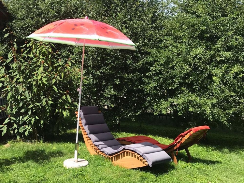Der Abendfreisitz auf der Westseite mit Grillmöglichkeit, die Sonnenliegen und die Sofalandschaft mit Feuerstelle steht allen Gästen des Hauses zur Verfügung.