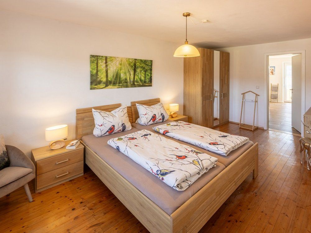 Die FeWo Ach mit Balkon hat 1 Schlafzimmer mit Doppelbett (1,8 x 2m)und Kleiderschrank.