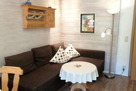 Sie verfügt über zwei getrennte Schlafzimmer: ein Elternschlafzimmer mit Doppelbett und ein angeschlossenes Kinderschlafzimmer mit zwei Einzelbetten. Zusätzlich gibt es im Wohnraum eine Couchgarnitur und eine integrierte Küchenzeile. Die Ausstattung umfasst einen Sat-Flachbildschirm, ein Badezimmer mit Dusche/WC, Waschbecken und Fön sowie zwei Balkone (West- und Südbalkon) mit Blick auf die Allgäuer Alpen.
