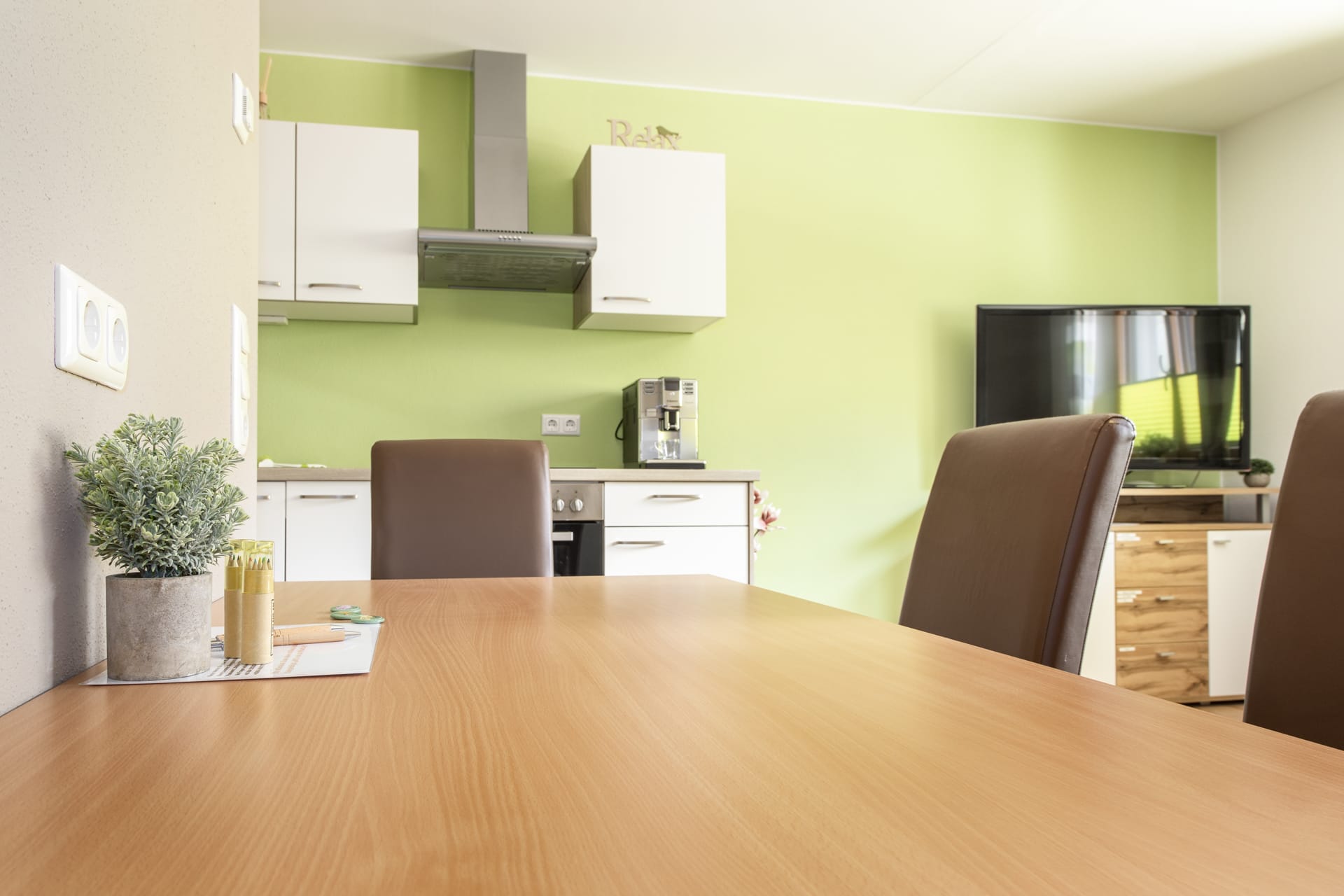 Unser Appartement befindet sich im Erdgeschoss und bietet 55 m² zum Wohlfühlen für die ganze Familie. Ein Schlafzimmer mit Doppelbett und eine Ausziehcouch im Wohn-Essbereich stehen zur Verfügung.