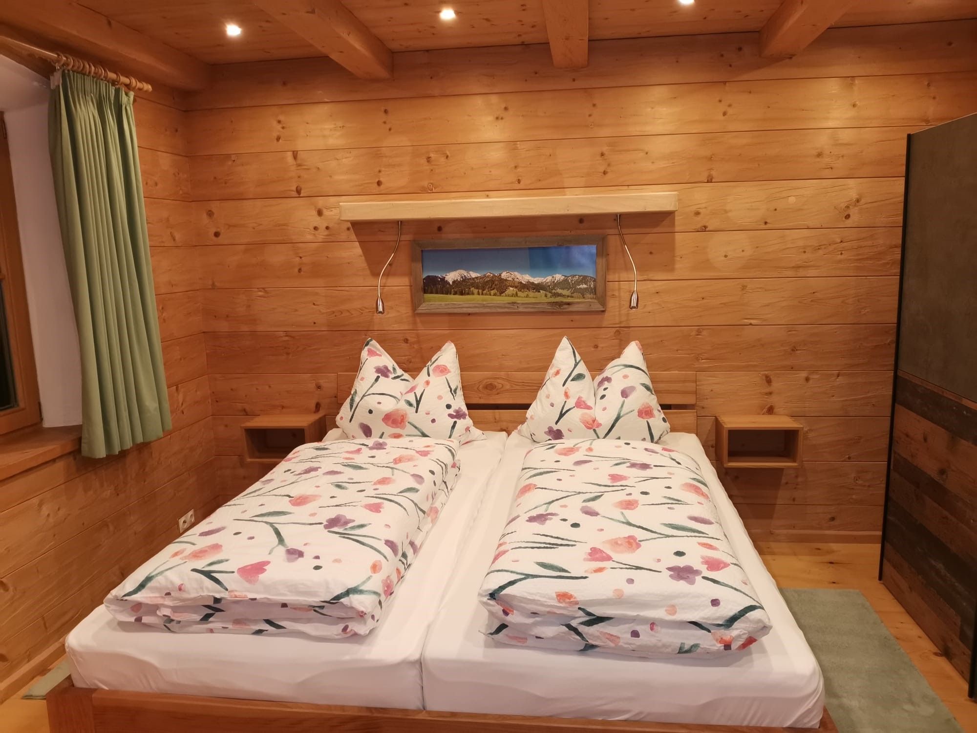 Im Obergeschoss finden sie ein großzügiges Schlafzimmer mit komfortablen Doppelbett und einer Schlafcouch. Alle Schläfzimmer sind mit Insektenschutzrollos ausgestattet. Der Zugang zum großen Balkon ermöglicht es ihnen, die frische Bergluft im heilklimatischen Kurort zu genießen. Ebenso ein Badezimmer mit Whirlpool-Badewanne und eine Garderobe.