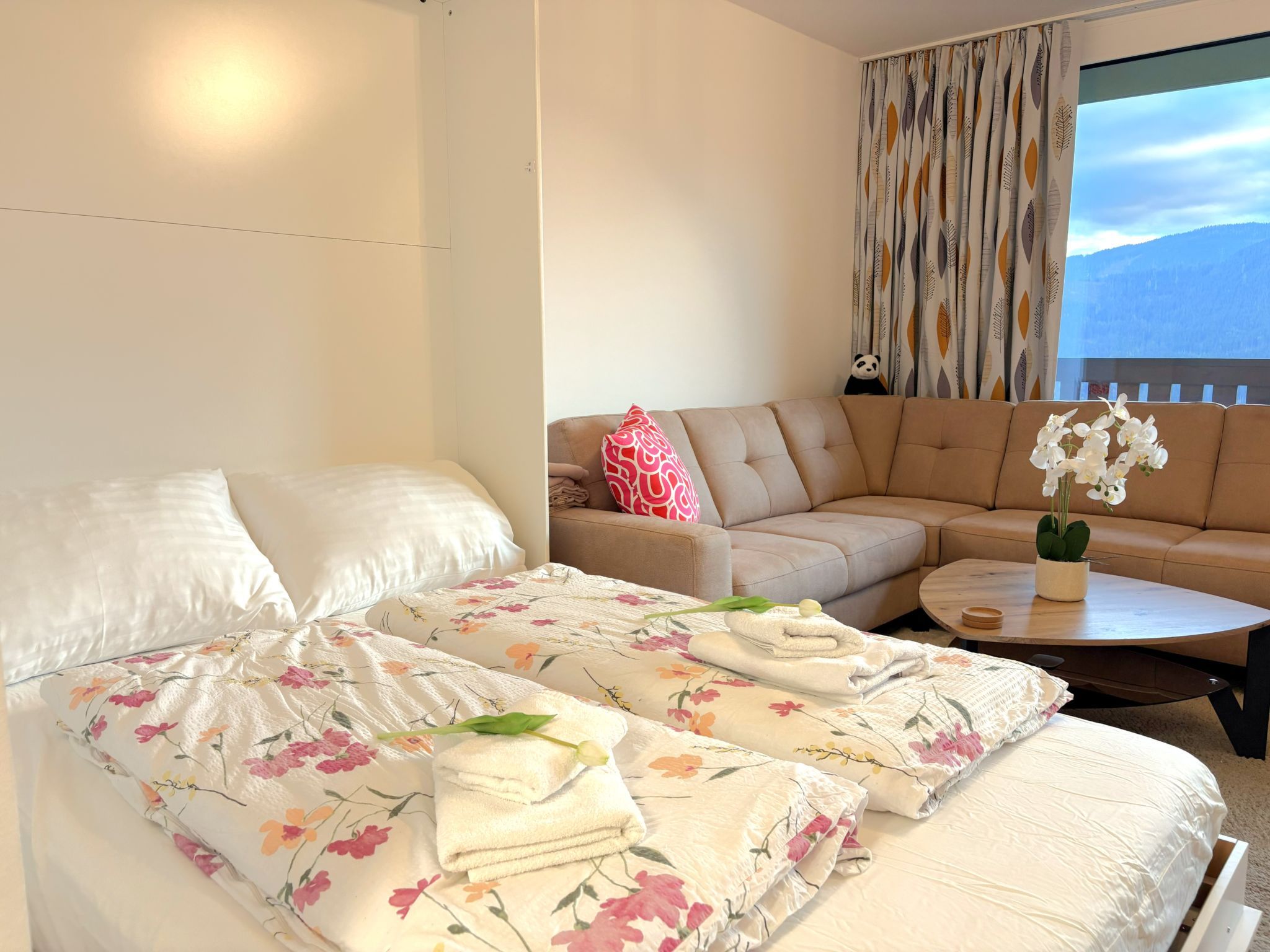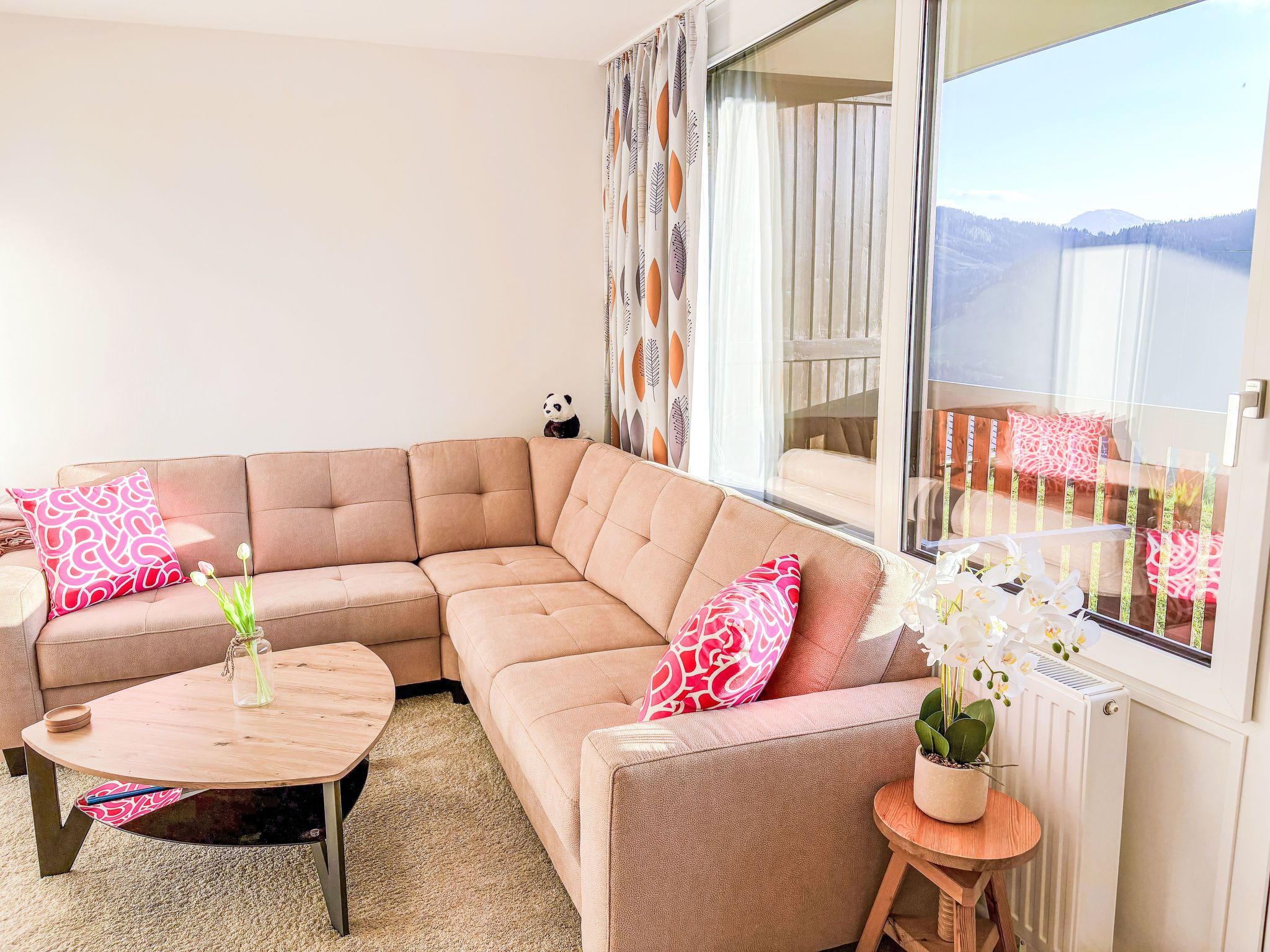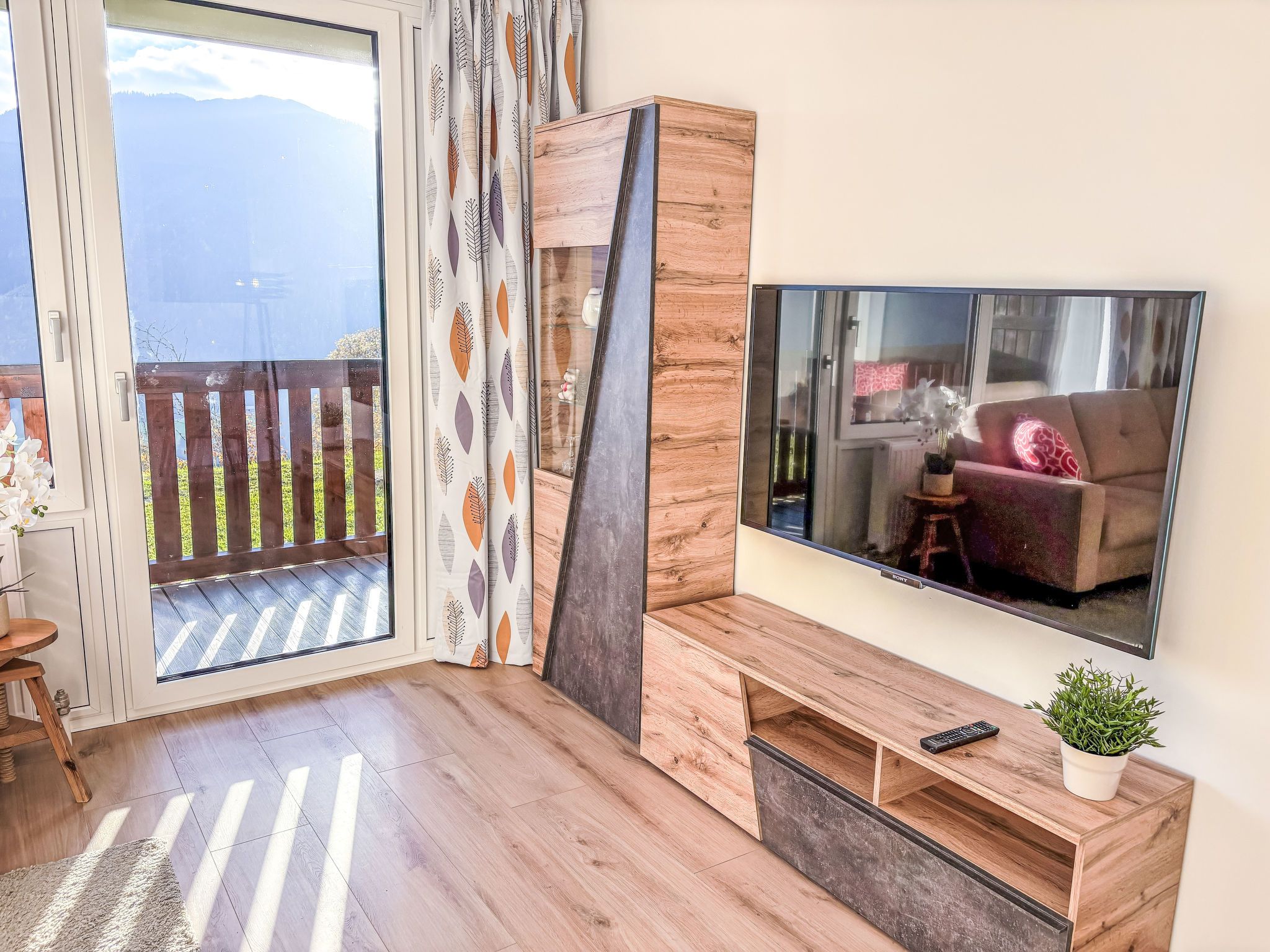 Top A, 1-Zimmer-Wohnung 39 m2, im Erdgeschoss. Hell, teilweise renoviert im Jahre 2024, gemütlich eingerichtet: Eingang. Wohnzimmer mit 2 Wandschrankbetten, Esstisch und Kabel-TV (Flachbildschirm). Ausgang zum Balkon. 1 Zimmer mit 2 Betten. Kleine Küche (3 Kochplatten, Toaster, Tiefkühler, elektrische Kaffeemaschine). Dusche/WC. Heizung. Balkon 10 m2. Balkonmöbel. Sehr schöne Panoramasicht auf die Berge und die Landschaft. Zur Verfügung: Haartrockner. Parkplatz. Bitte beachten: Nichtraucher-Unterkunft, Nichtraucher-Haus. Wunderschöne Lage, idealer Ausgangspunkt, um die Skiwelt Amadé zu erkunden. 50415-006730-2020