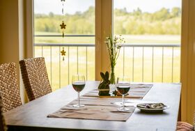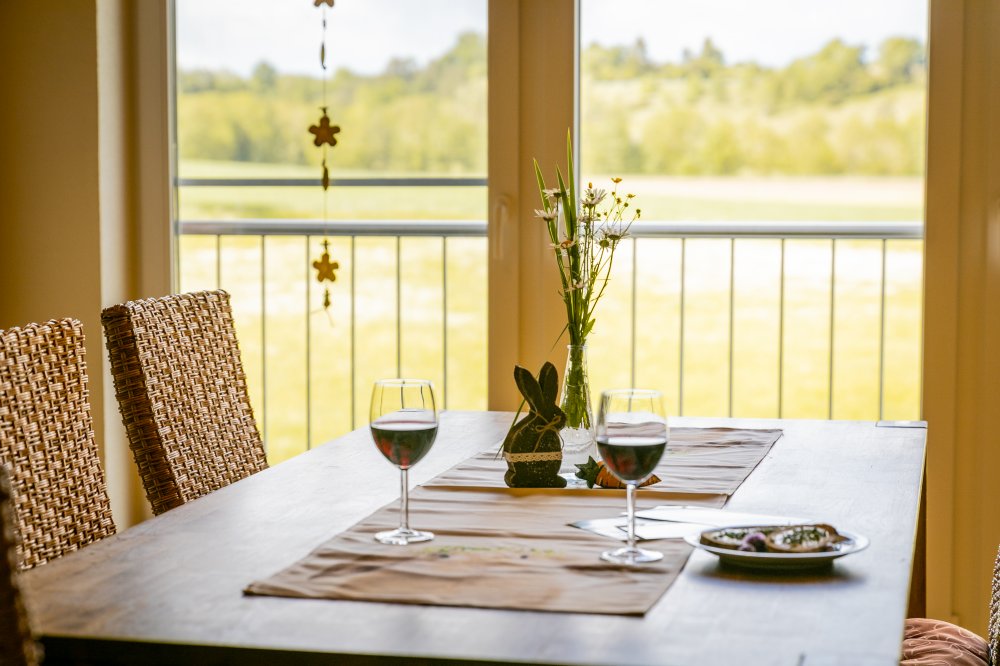 Das Ferienhaus Hasengrube mit 2 Terrassen bietet einen wunderschönen Blick auf eine weitläufige Naturlandschaft.