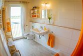 Das Badezimmer mit Fenster ist mit Dusche und WC ausgestattet.