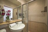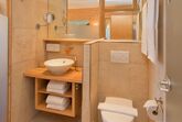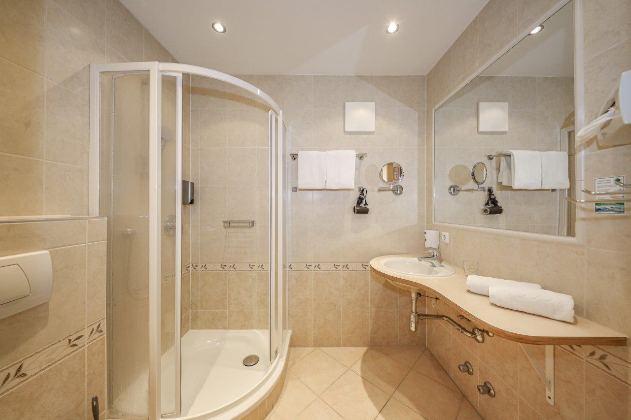 • Zimmer mit Loggia (verglast) : kleines Bad, Zimmer Waldseite größeres Bad, alle mit Du/WC, Haartrockner, Handtücher