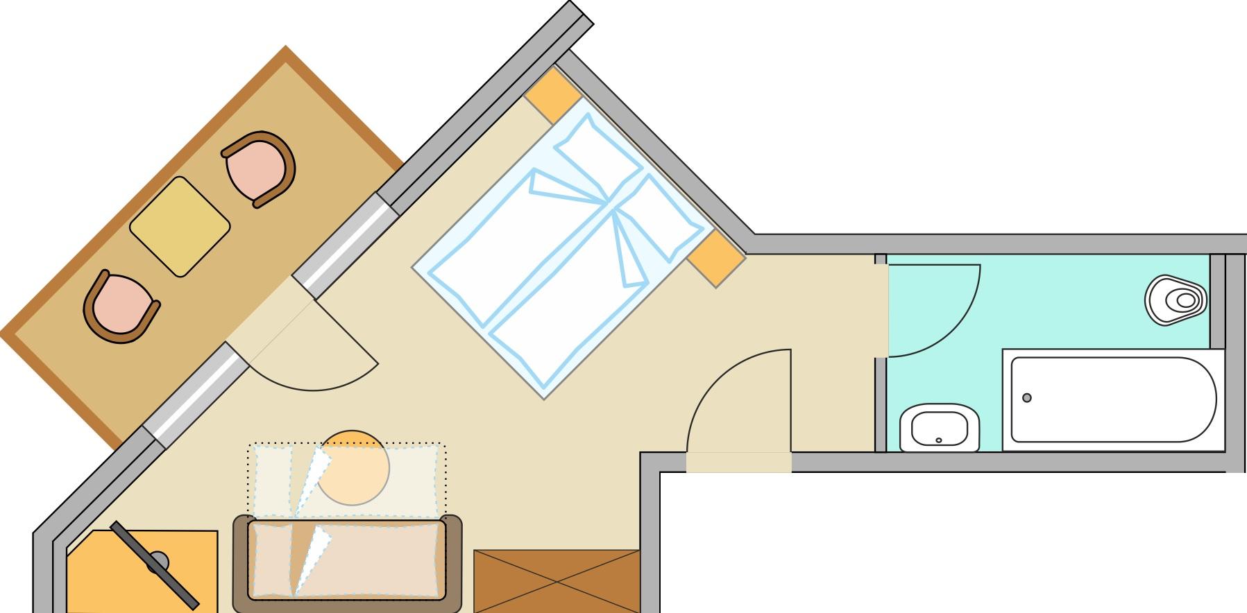 zwei bis 4 Personen Zimmer mit 26-30 m² mit Balkon und