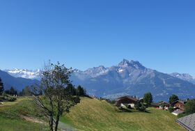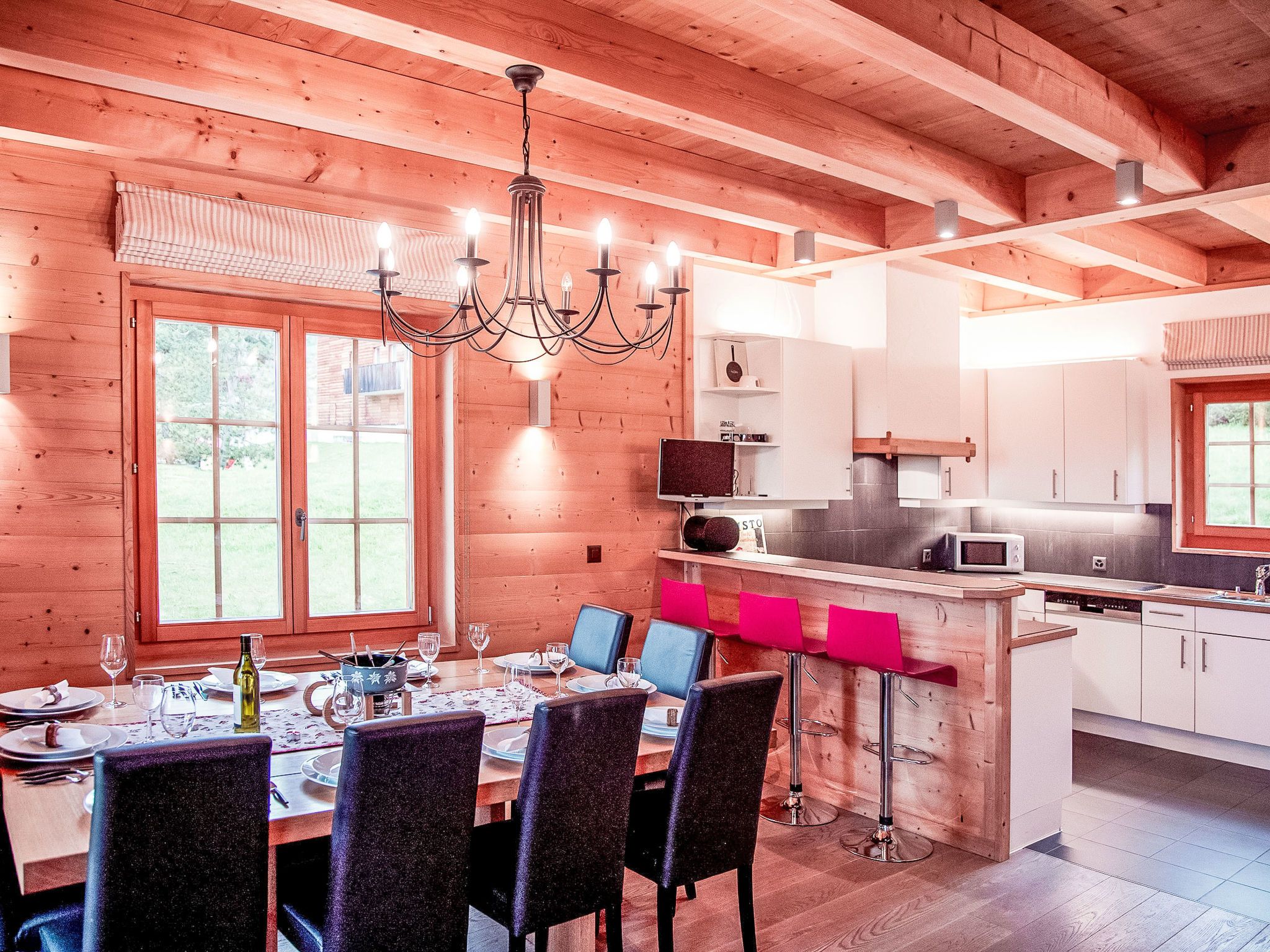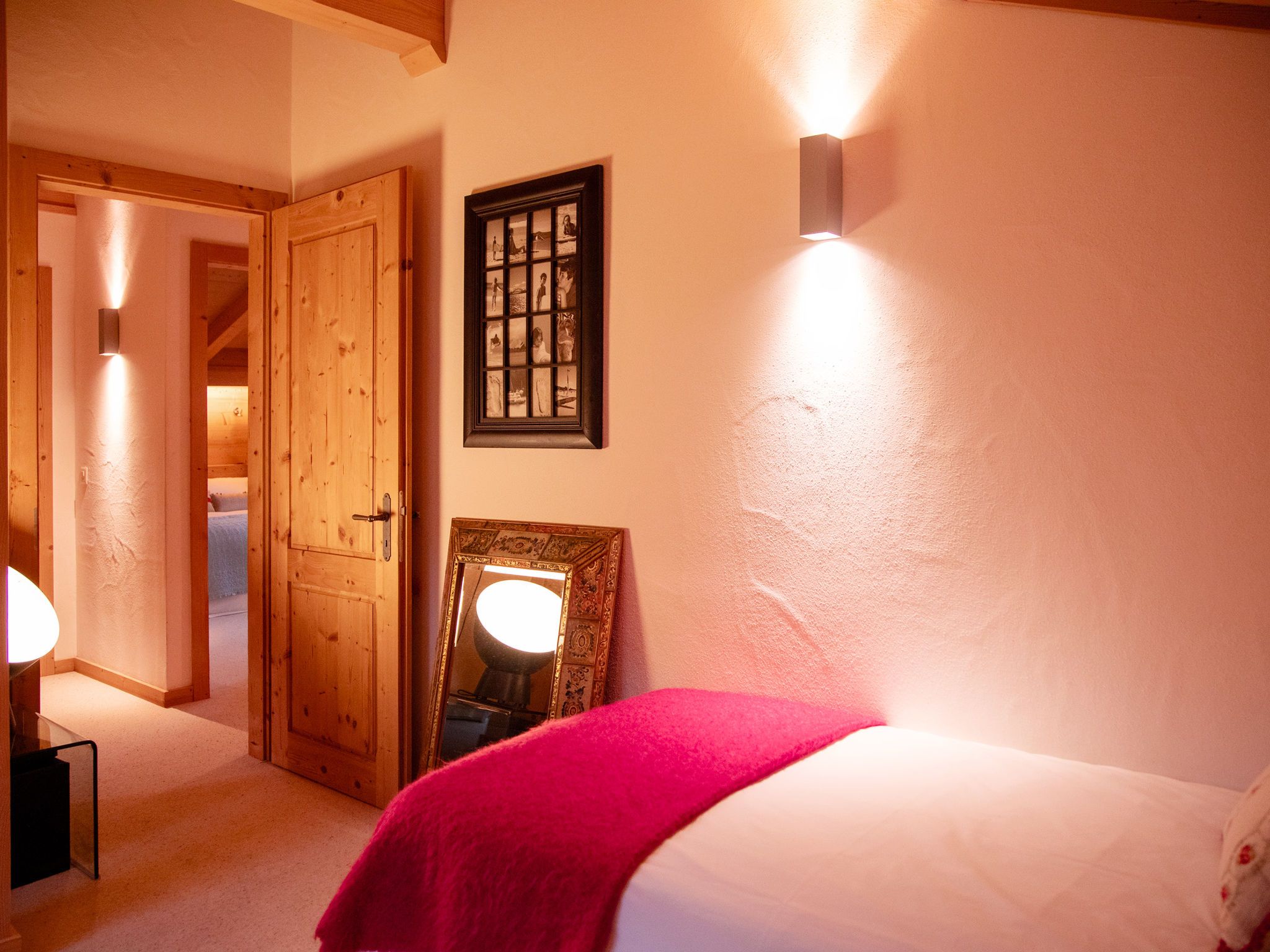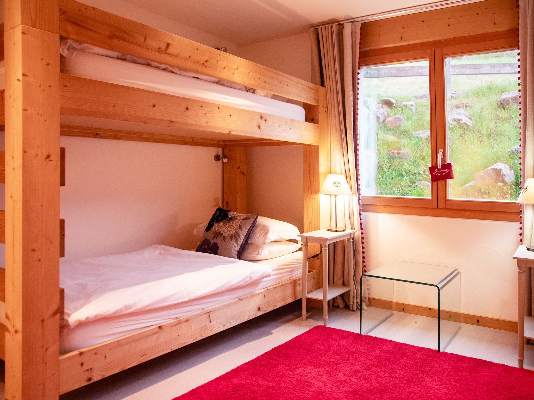 Chalet Olivier, 6-Zimmer-Chalet 216 m2 auf 3 Stockwerken. Geräumig, komfortabel und geschmackvoll eingerichtet: grosses Wohn-/Esszimmer mit offenem Kamin und Esstisch. Ausgang zur Terrasse, Richtung Süden. Offene Küche (Backofen, Geschirrspüler, 5 Flammen, Toaster, Wasserkocher, Mikrowelle, Tiefkühler, elektrische Kaffeemaschine, Kapseln für die Kaffeemaschine (Nespresso) extra, Racletteofen, Fondue Set (Käse)) mit Bar. Sep. WC. Unteres Geschoss: 1 Zimmer mit 2 x 2 Etagenbetten (90 cm, Länge 200 cm), Dusche/WC. Salon mit TV (Flachbildschirm). Sep. WC. Obergeschoss: 1 Zimmer mit 1 franz. Bett (1 x 180 cm), Dusche/WC. Ausgang zum Balkon, Richtung Süden. 1 Zimmer mit 1 franz. Bett (1 x 180 cm). Ausgang zum Balkon, Richtung Süden. 1 Kinderzimmer mit 2 Betten (90 cm, Länge 180 cm), Bad/Dusche/WC. Balkon, Südlage, grosse Terrasse, Südlage, Garten. Terrassenmöbel, Gartengrill. Sehr schöne Panoramasicht auf die Berge. Zur Verfügung: Waschmaschine, Wäschetrockner, Haartrockner. Internet (WLAN, gratis). Parkplatz (1 Auto), Garage (1 Auto). Bitte beachten: Nichtraucher-Haus.