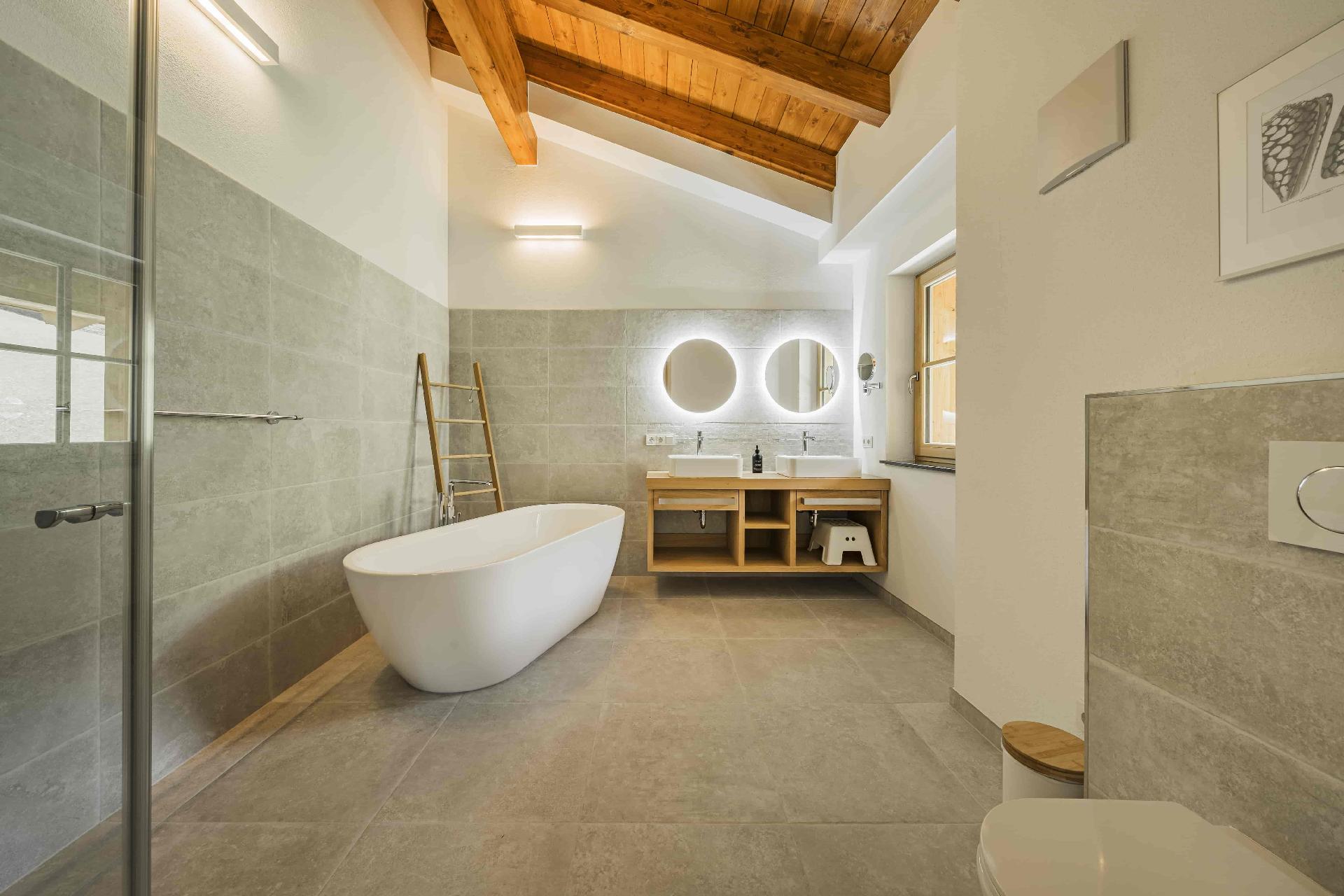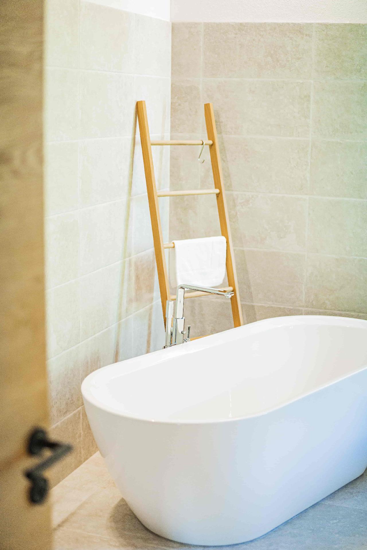 Tauche ein in das angenehme Wohnambiente, das durch eine durchdachte Innenausstattung zur Erholung einlädt. Die Wohnung verfügt über zwei gemütliche Schlafzimmer und zwei Badezimmer, von denen eines mit einer Dusche und das andere mit einer Badewanne ausgestattet ist, um den Bedürfnissen aller Gäste gerecht zu werden. Für zusätzlichen Komfort sorgen die teilweise vorhandene Fußbodenheizung sowie moderne Annehmlichkeiten wie die Kapsel-Kaffeemaschine, ein Wasserkocher und eine Spülmaschine – ideal für Selbstversorger.
