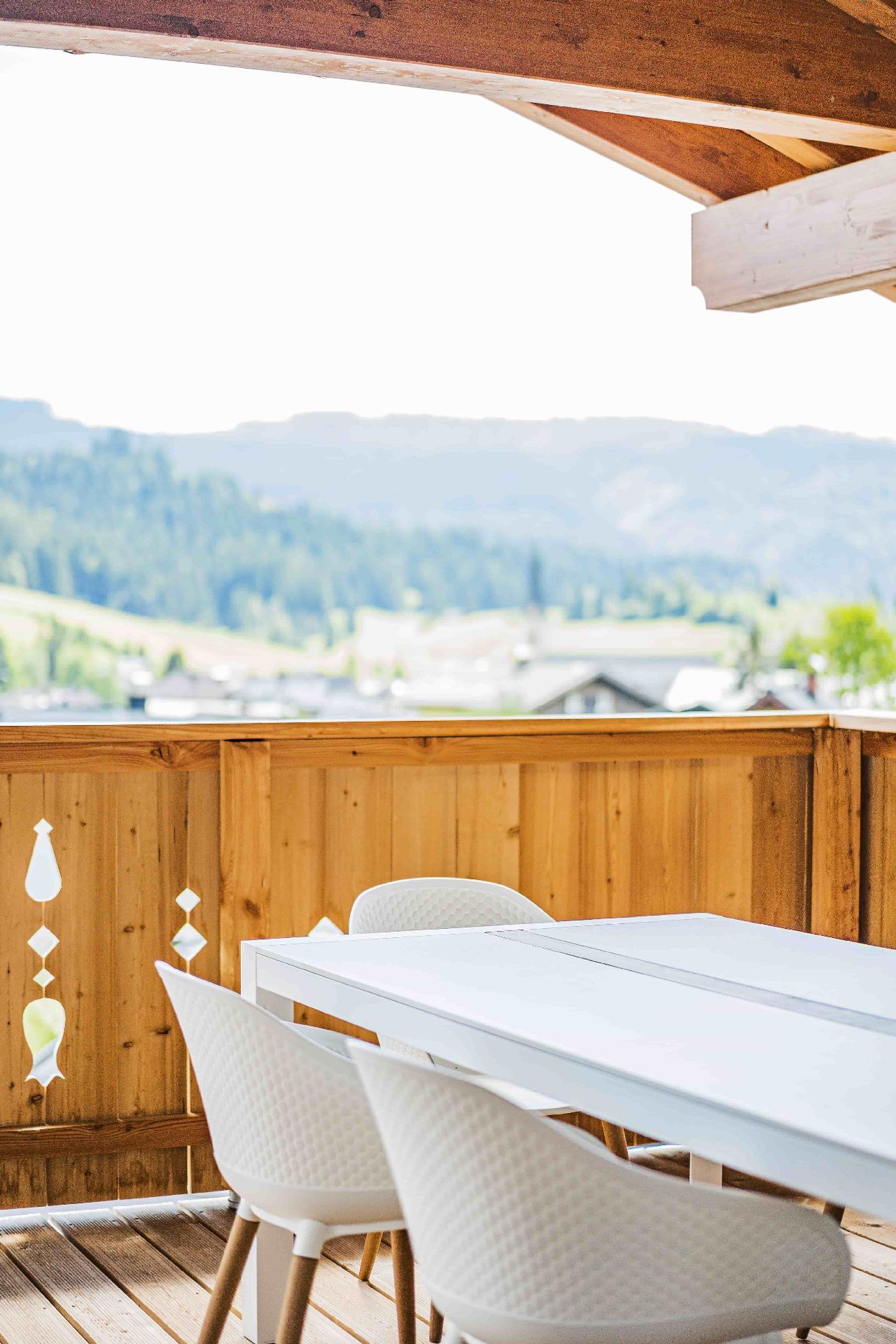 Im Außenbereich lockt die einladende Terrasse, auf der man die ruhige Umgebung und frische Bergluft genießen kann. Ein perfekter Ort, um gemütliche Stunden im Freien zu verbringen, sei es bei einem morgendlichen Kaffee oder einem entspannten Abendgetränk. Diese ruhige Ecke wird Deinen Aufenthalt garantiert bereichern.
