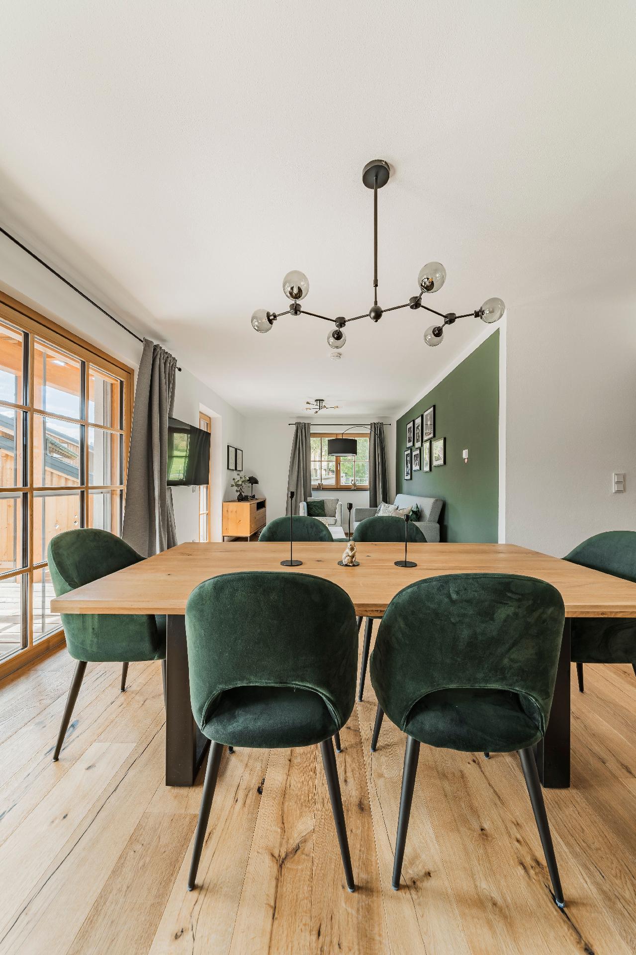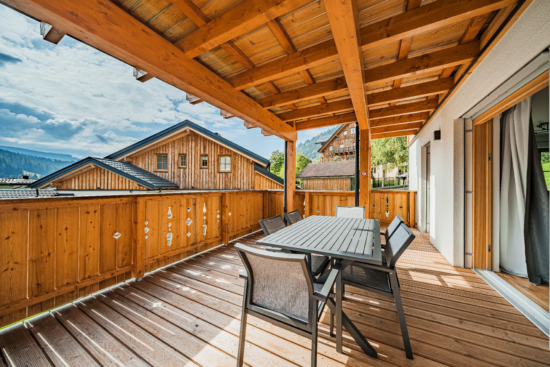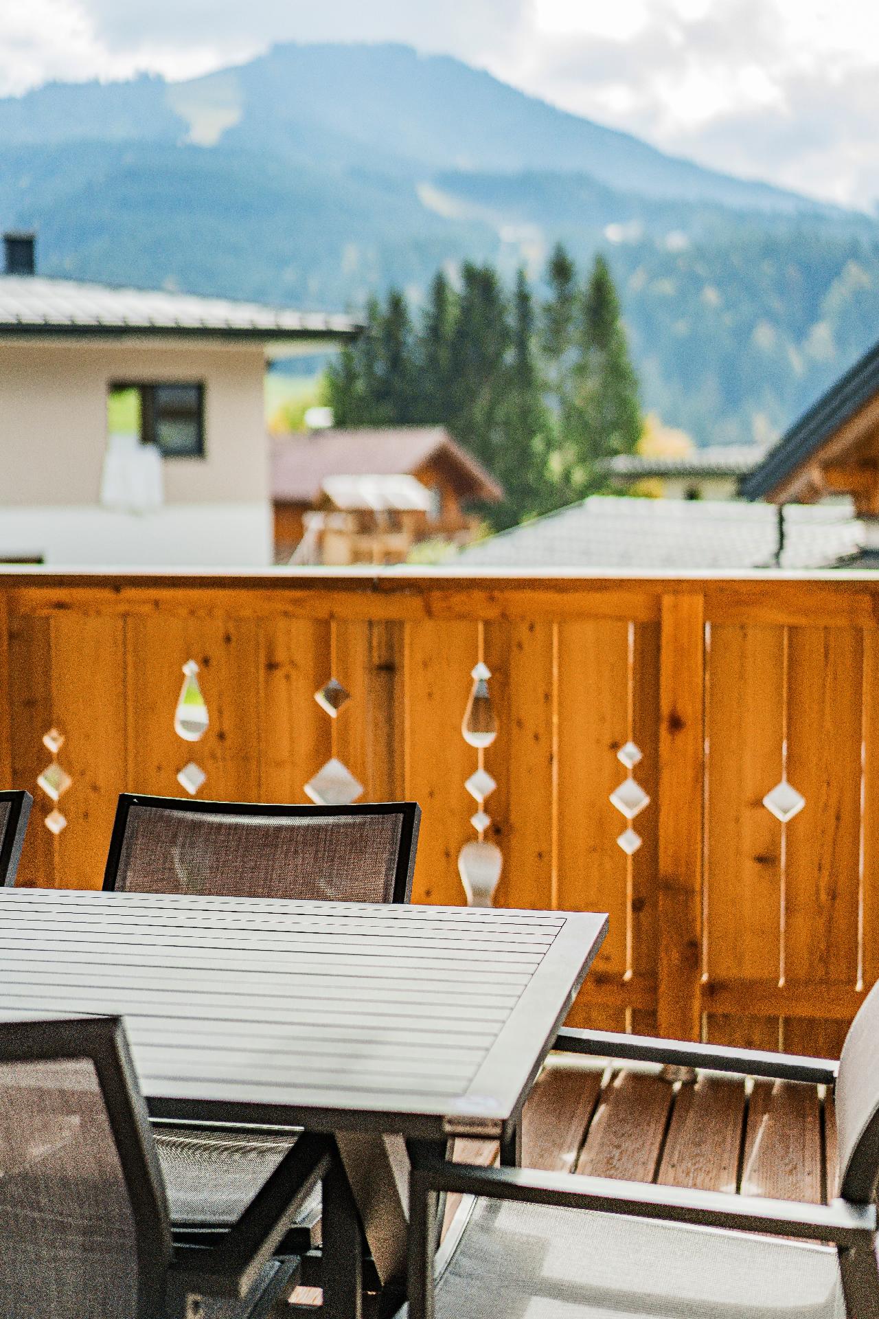 Der Außenbereich lädt mit einer ansprechenden Terrasse dazu ein, die frische Bergluft zu genießen und gemeinsame Stunden unter freiem Himmel zu verbringen. Ob bei einem Frühstück mit Blick auf die malerische Landschaft oder bei einem entspannenden Drink am Abend – die Terrasse bietet den idealen Rahmen, um die natürliche Schönheit der Umgebung aufzusaugen.