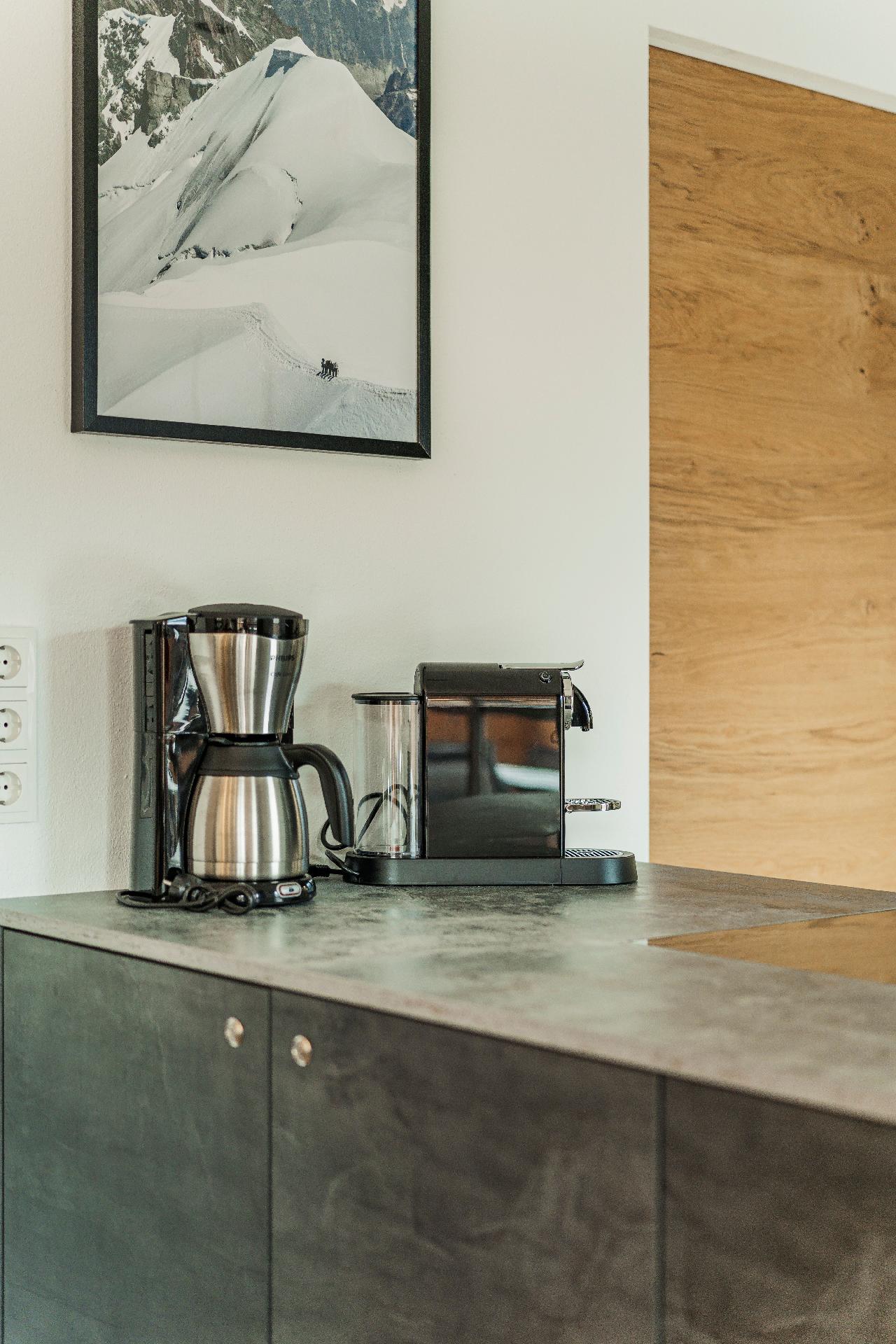 Im Inneren des Apartments sorgen eine Fußbodenheizung in bestimmten Bereichen für angenehme Wärme und ein behagliches Gefühl. Für Kaffeeliebhaber steht eine Kapsel-Kaffeemaschine bereit, um den Morgen mit einer aromatischen Tasse Kaffee zu starten. Eine voll ausgestattete Küche mit einem Spülmaschine und Wasserkocher erleichtert die Essenszubereitung, sodass du und deine Lieben gemeinsame Mahlzeiten genießen können, ohne auf Komfort zu verzichten.
