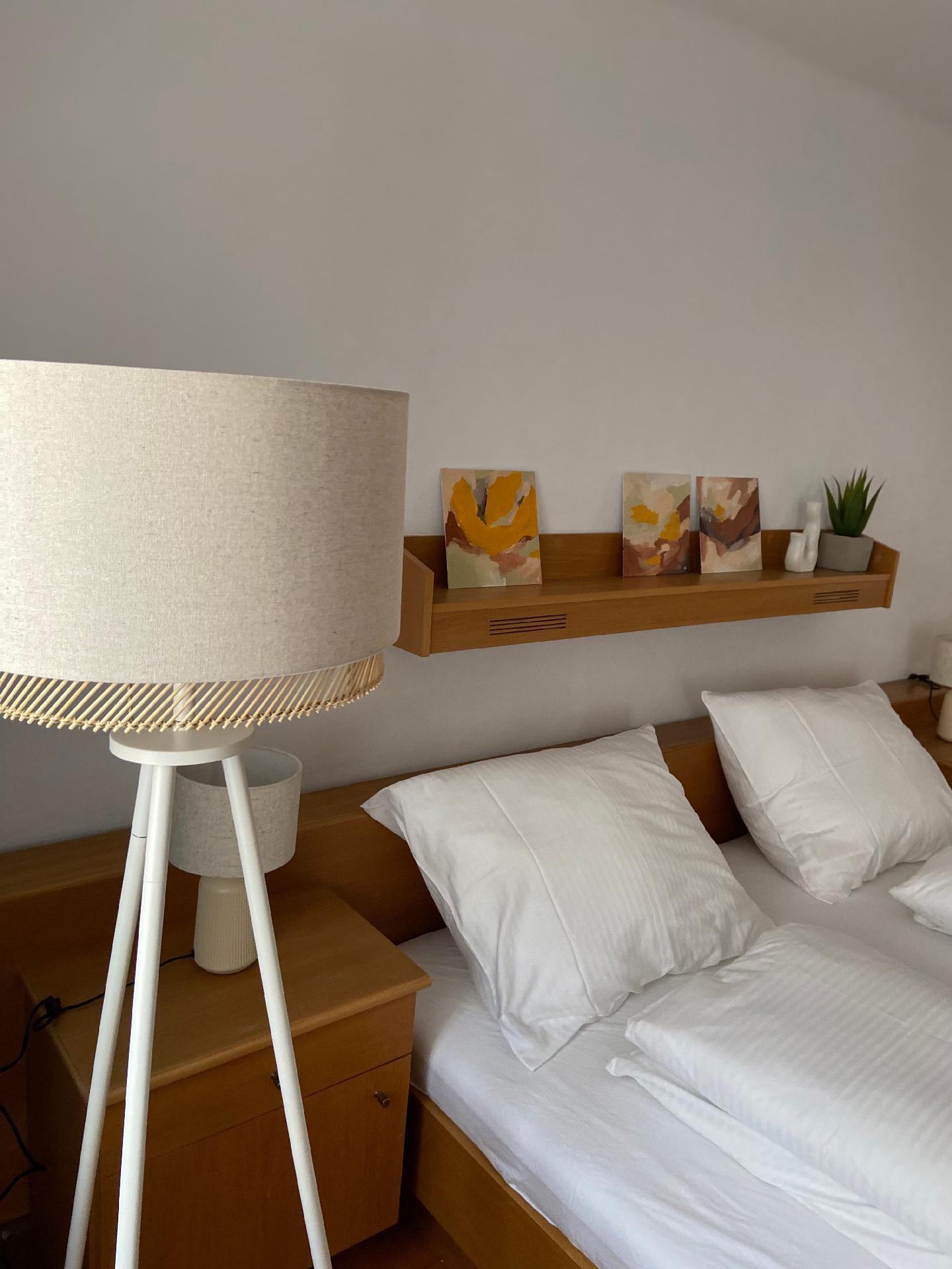 In der Ferienwohnung erwartet Sie ein großzügiger Schlafbereich, der perfekt für einen erholsamen Schlaf nach einem Tag voller Entdeckungen in Gmunden ist. Die Wohnung bietet außerdem eine angenehm ausgestattete kleine Küche, die mit allem Notwendigen wie einer Espressokanne, einer Nespresso-Kapsel-Kaffeemaschine und einem Wasserkocher für Ihr morgendliches Heißgetränk ausgestattet ist. Ein gemütliches Ambiente zum Kochen und Verweilen ist somit garantiert.