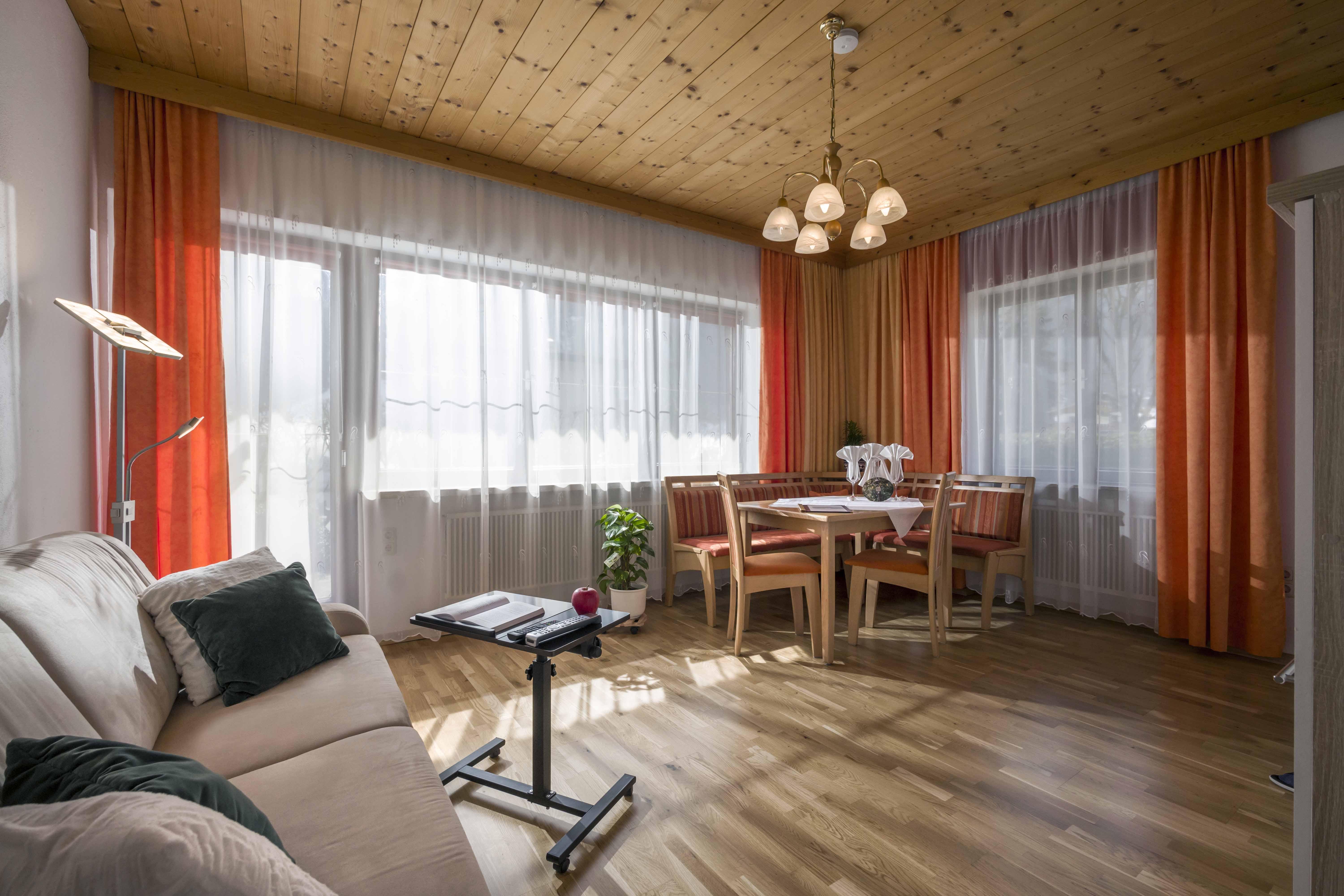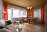 Die Wohnung verfügt über 2 Schlafzimmer und eine Wohnküche mit ausziehbarem Schlafsofa, 3 Fernseher, Sat-Empfang, Amazon-Fire TV-Stick um Netflix, Amazon-Prime, u.a. Online-Dienste nutzen zu können. Ihre Küche ist voll ausgestattet: Geschirr, Kochutensilien, Geschirrspüle, Kaffeevollautomat, Backherd und Ceranfeld. Bad mit Whirlpool-Badewanne und Licht-Therapie. Schlafzimmer mit Room-in (WC mit Dusche). Im Haus ist zusätzlich ein Spieleraum und eine Waschmaschine mit eingebautem Trockner.