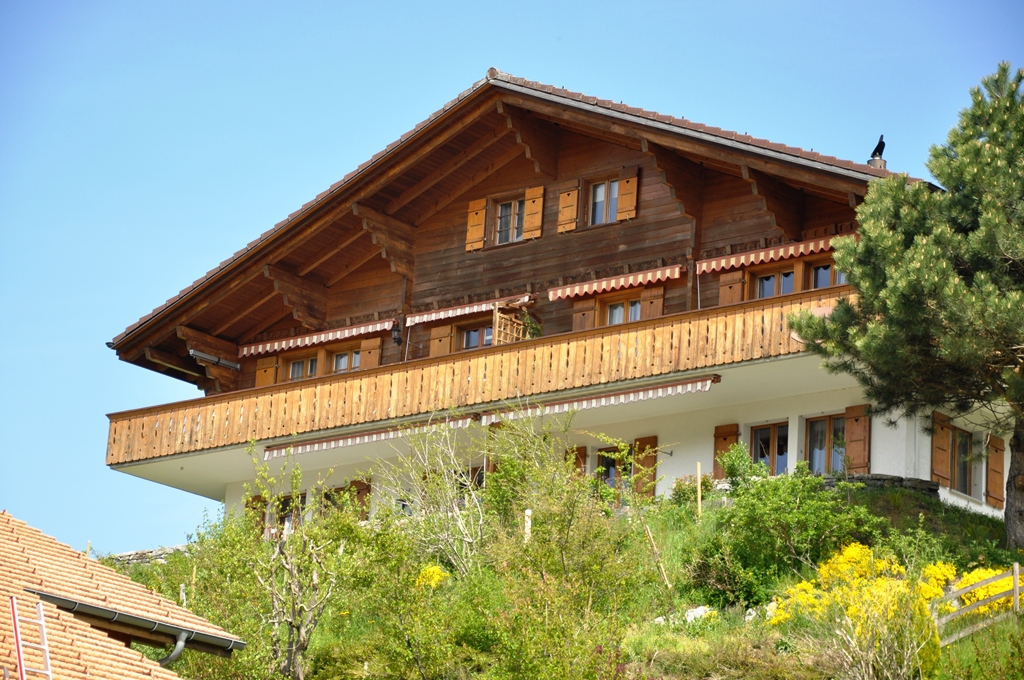 Das Haus befindet sich in einer ruhigen und idyllischen Lage in Hasliberg Reuti und bietet einen herrlichen Blick auf die Berge. Eine enge Strasse führt nach dem Hotel Reuti rechts runter (Schild Sackgasse) bis ins Flachstück wo nach einer kleinen Hütte der Parkplatz auf der linken Seite liegt. Hinter der Hecke versteckt sich der Haupteingang zum Haus. Eine Terrasse steht Ihnen Verfügung, um die Natur und die Fantastische Aussicht zu genießen. Die Gondelbahnstation, der Dorfladen, Kinderspielplatz und verschiedene Restaurants liegen in unmittelbarer Nähe. In der Umgebung gibt es zahlreiche Wandertouren und Aktivitäten wie Skifahren, Mountainbiken und Wandern.