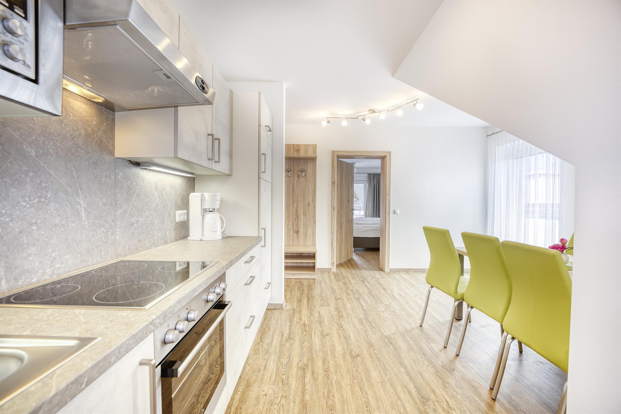 Unsere Ferienwohnungen im Haus 2, sind mit 1 - 2 Schlafräumen, 1 Wohnraum, Kochnische - komplett eingerichtet mit Geschirrspüler Backrohr, Ceranfeld,Wasserkocher und Kaffeefiltermaschine, Dusche WC, Sat-TV, gratis WLAN und Balkon. Bade- und Handtücher, Bett und Tischwäsche sind vorhanden. Eigener Badestrand!