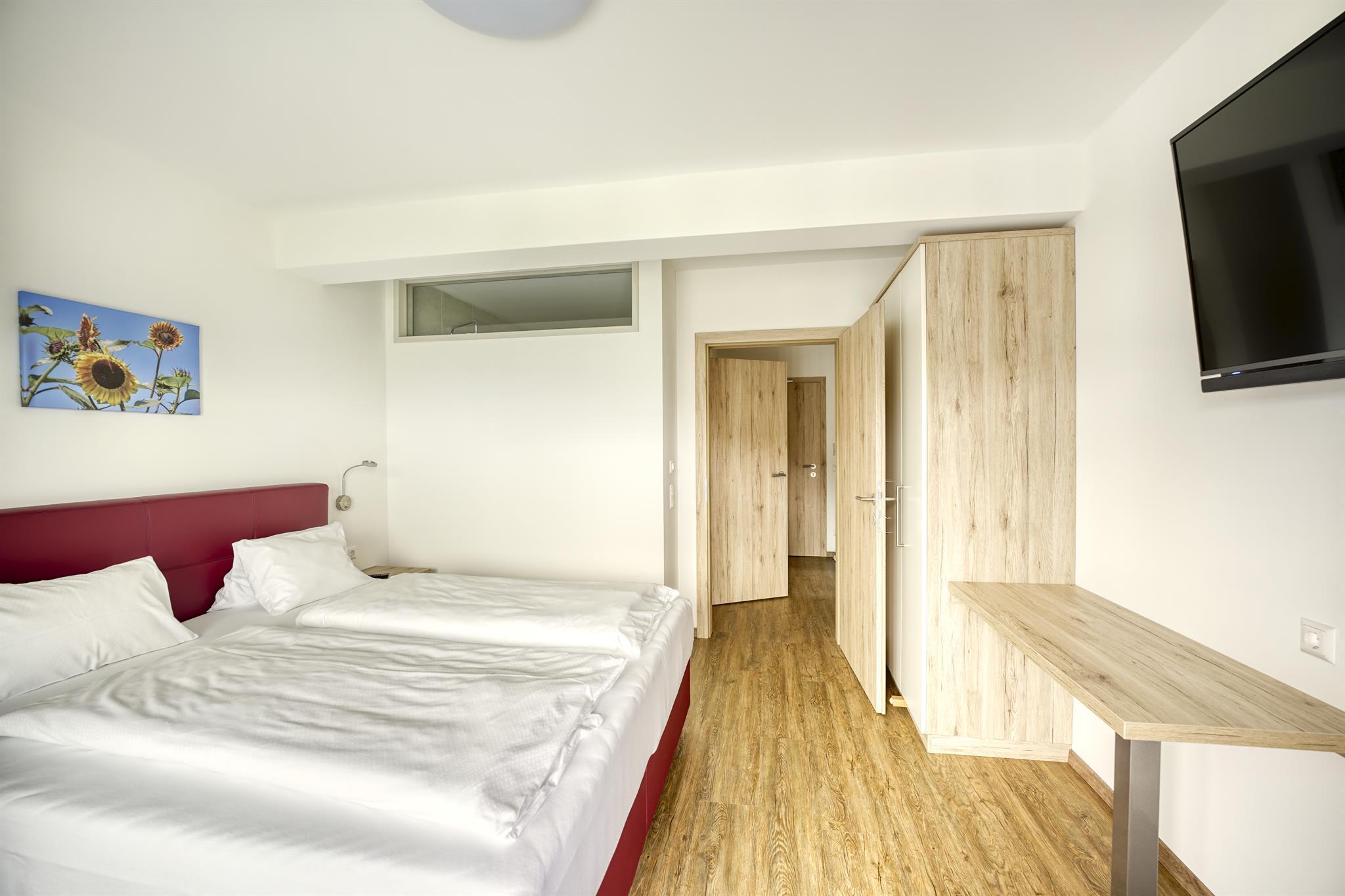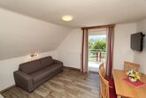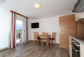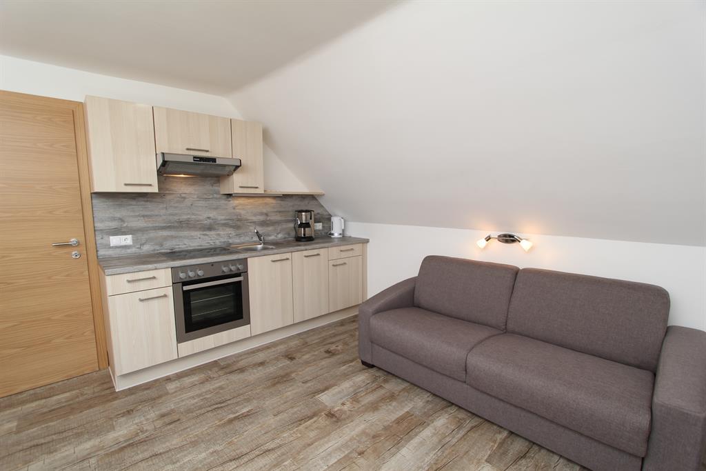 Unsere Ferienwohnungen Haus 3, sind mit 1 - 2 Schlafräumen, 1 Wohnraum, Kochnische - komplett eingerichtet, Dusche WC, Sat-TV, gratis WLAN und Balkon. Bade- und Handtücher, Bett und Tischwäsche sind vorhanden. Eigener Badestrand!