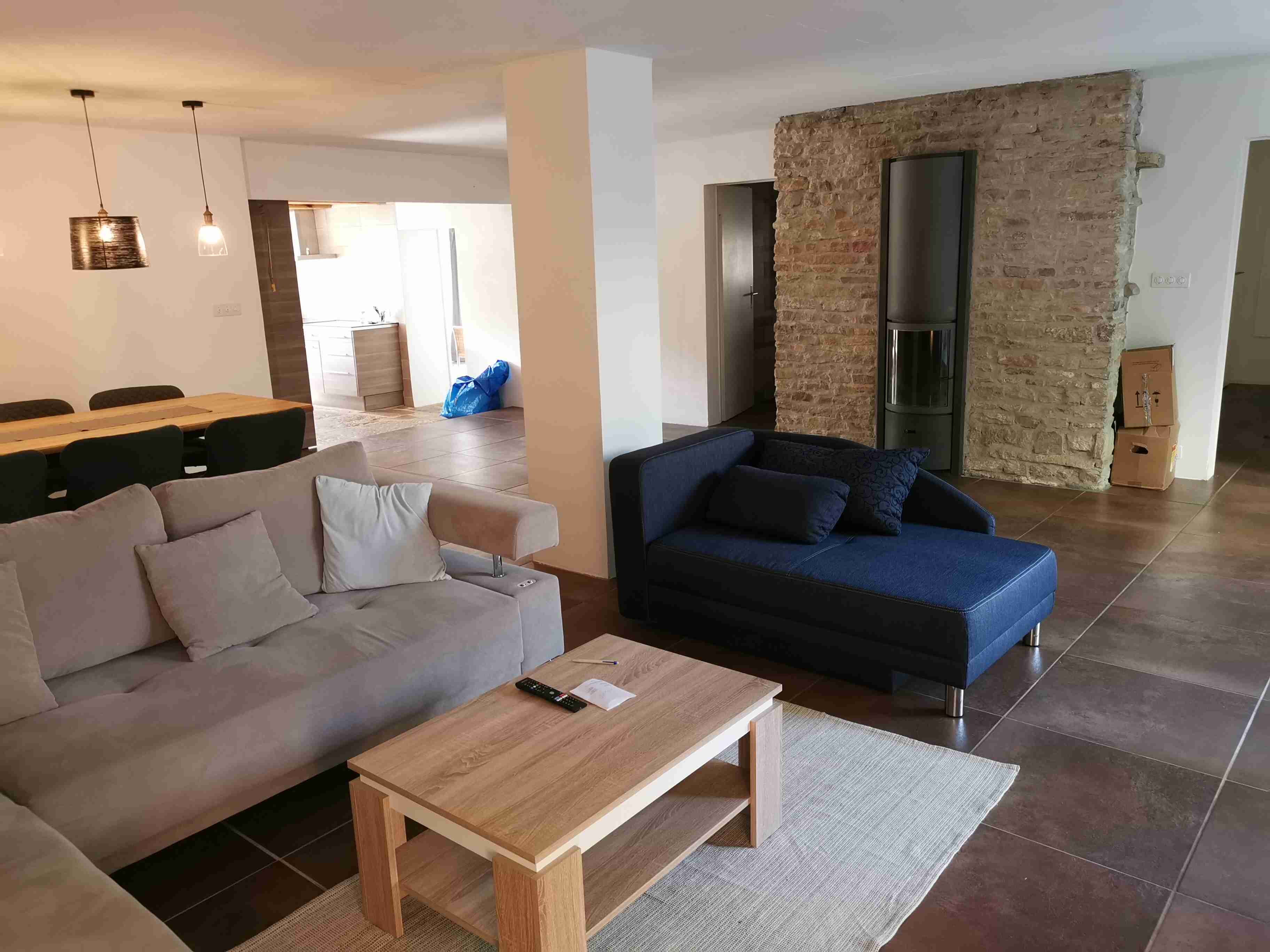 Gemütliche Wohnung in einem ehemaligen Bauernhaus in St. Brais. Kapazität für 6 bis 8 Personen auf einer Fläche von 128 m2 im oberen Erdgeschoss mit ebenerdigem Zugang. Drei Schlafzimmer: 2 Zimmer mit Doppelbett und ein Zimmer mit 2 Einzelbetten. Das Schlafsofa im Wohnzimmer bietet Platz für 2 weitere Personen. Moderne Einbauküche mit Geschirrspüler, Wohnzimmer mit voll ausgestatteter Bibliothek und Pelletofen, Esszimmer mit grossem Tisch, Abstellraum für Velos. Im Sommer stehen 1 grosse geschlossene und eine offene Terrasse zur Verfügung.