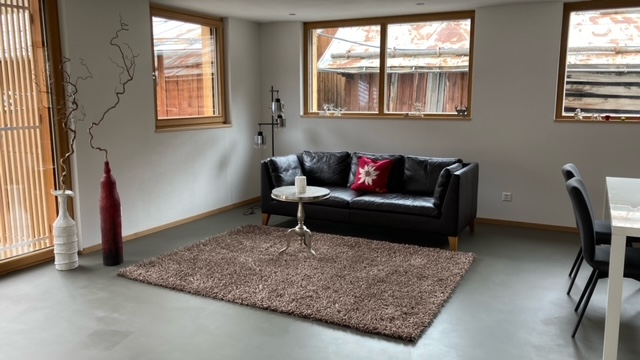 Die Wohnung ist im 1. Obergeschoss hat Bergsicht und Zugang über 1 Treppe zur Terrasse mit Abendsonne!