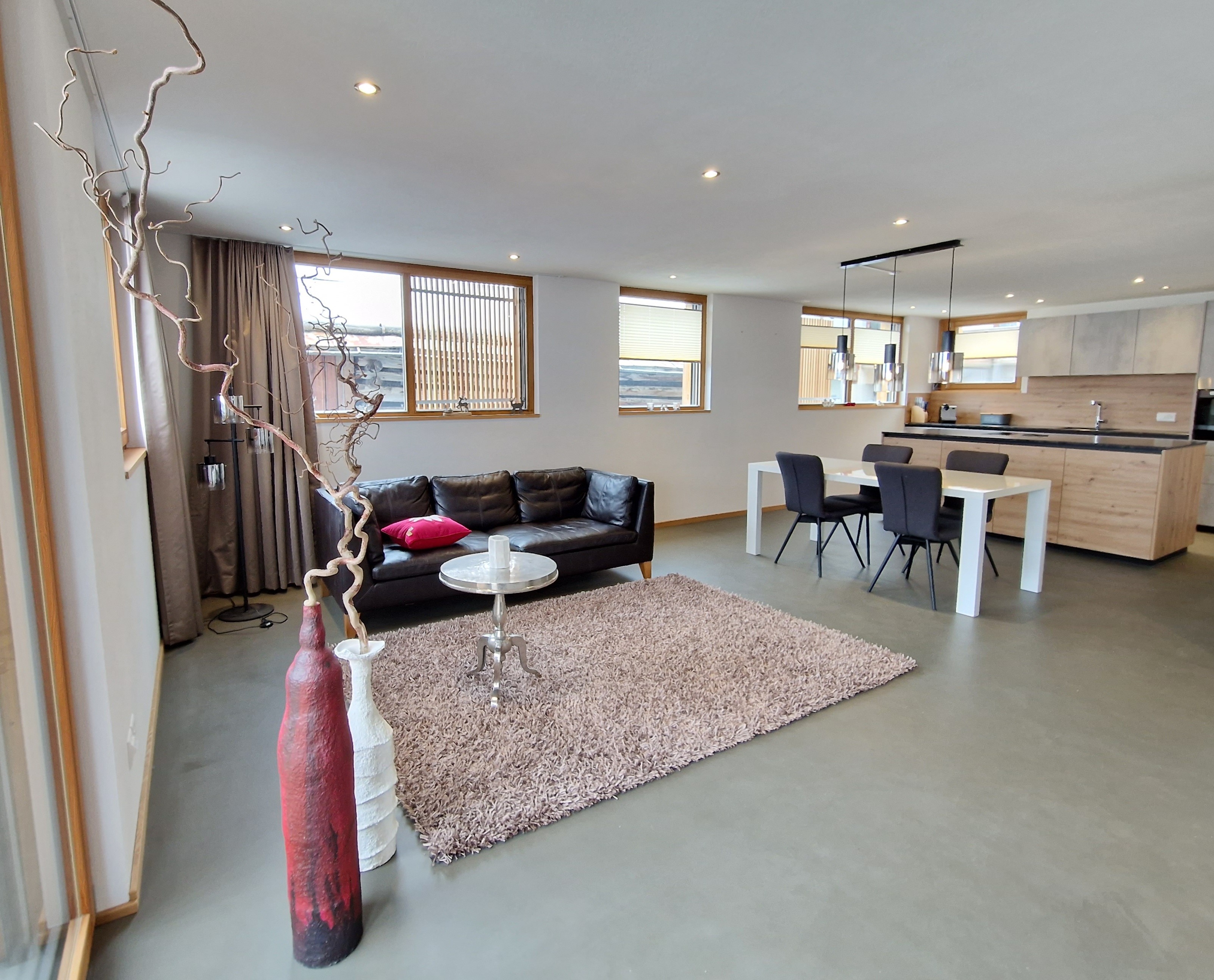 Der Wohnraum und die Küche sind neuzeitlich und grosszügig eingerichtet.