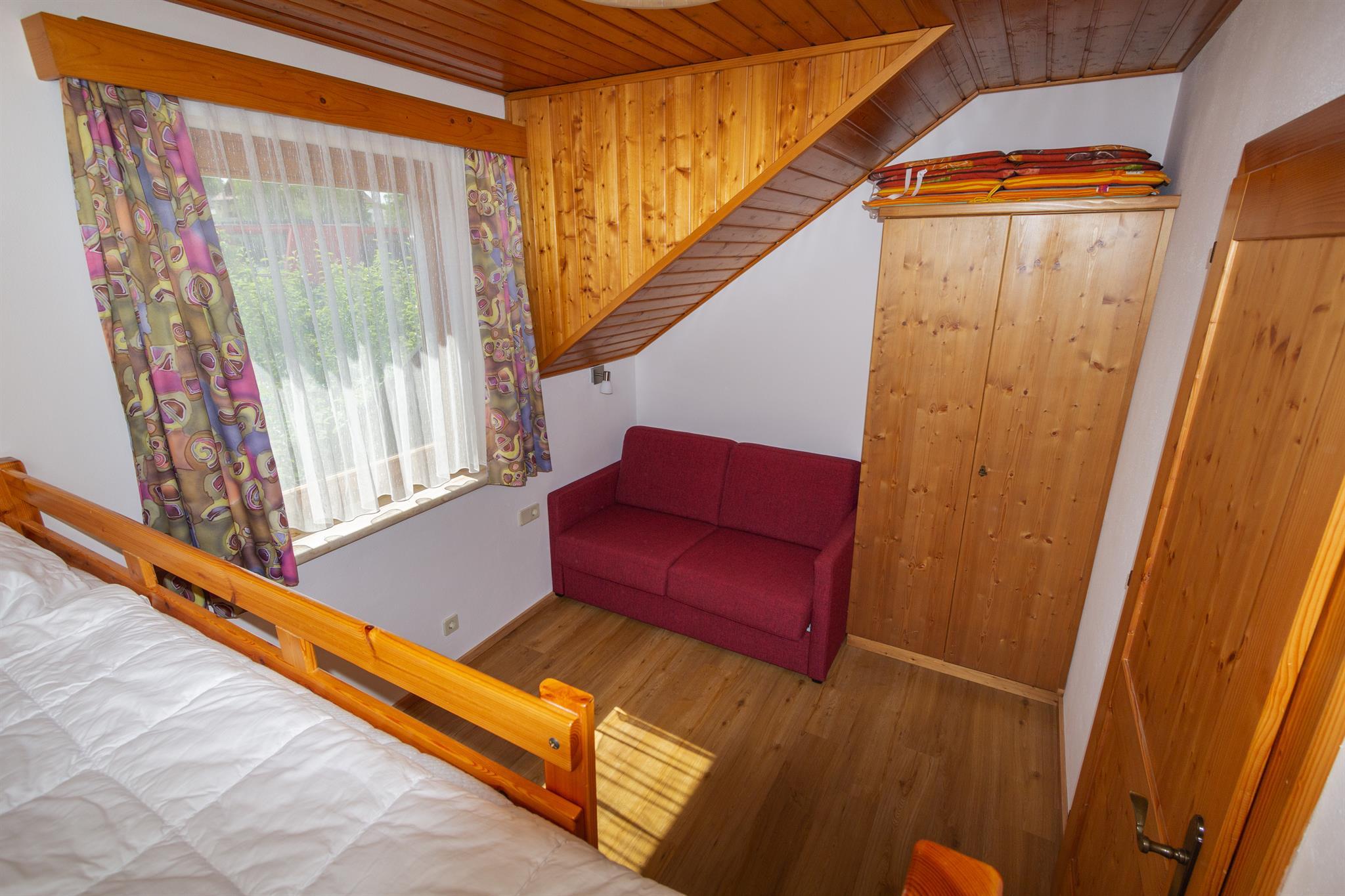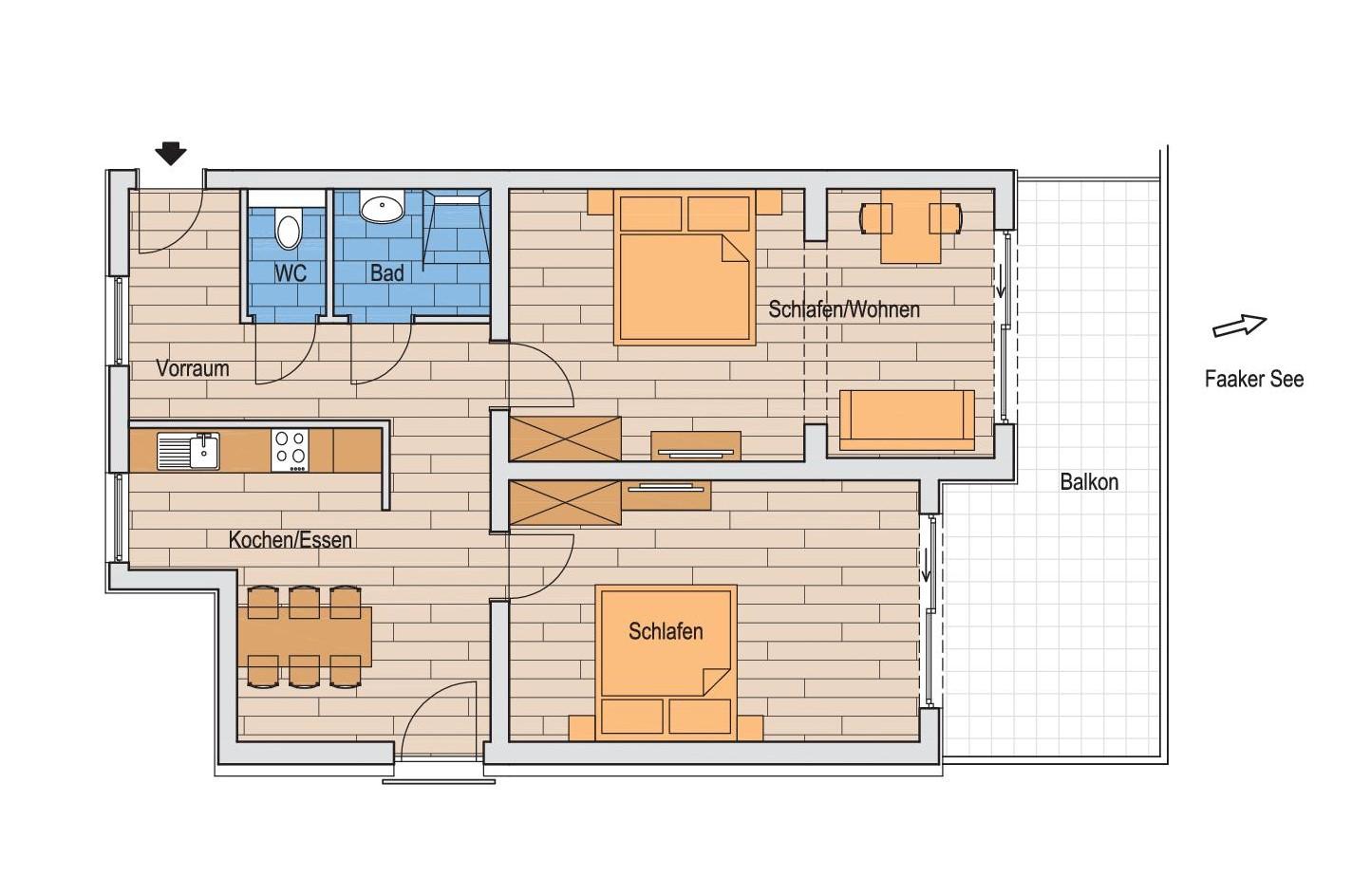 2 Schlafräume, 1 Wohnraum, Kochnische - komplett eingerichtet, Dusche WC, Sat-TV, Telefon und Balkon. Bade- und Handtücher, Bett und Tischwäsche sind vorhanden. Komfortzimmer mit Dusche, WC, Balkon, Sat-TV und Telefon. Gemütlicher Aufenthaltsraum mit Frühstücksterasse, erweitertes Frühstück. Gästekühlschrank, Kinderspielplatz, Liegewiese.
