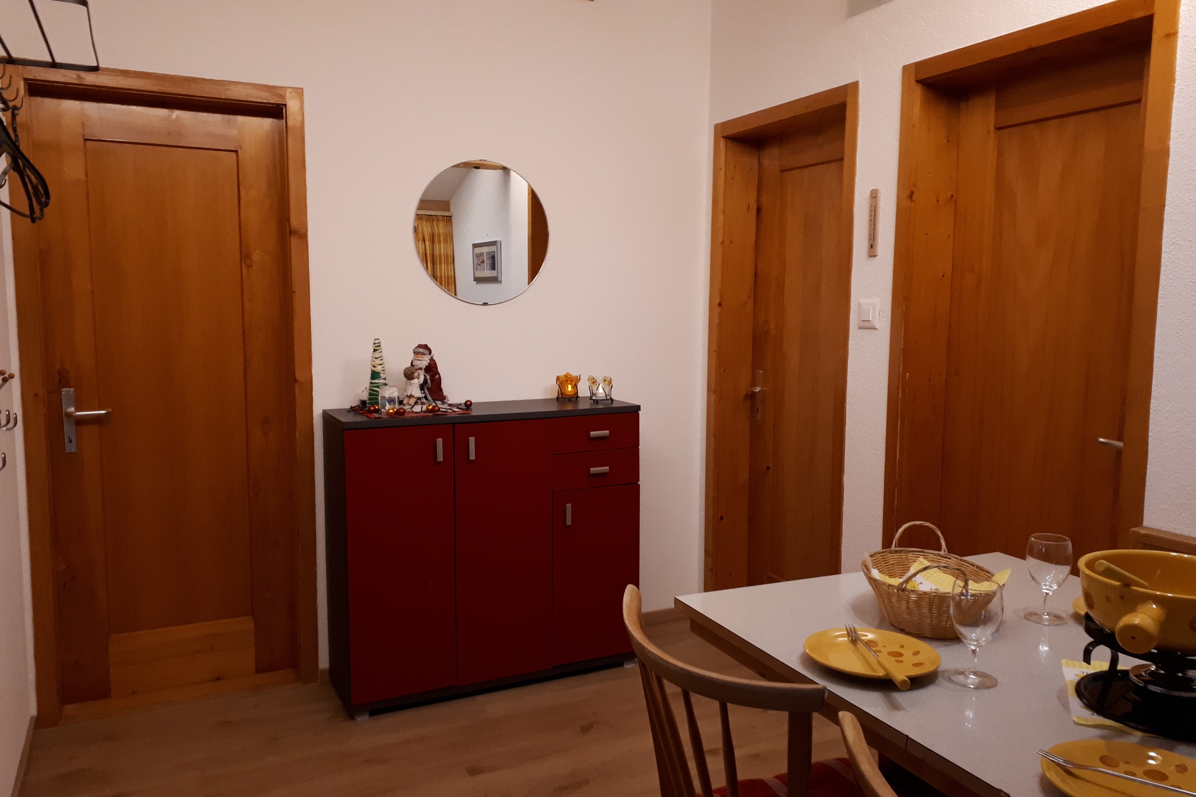 Die 3.5 Zimmer-Wohnung verfügt über zwei Schlafzimmer, eines mit Doppelbett, eines mit zwei Einzelbetten ein Badezimmer mit Dusche/WC ein Wohnzimmer mit Sofa, Flachbild-TV und Schlafgelegenheit eine Essecke mit Tisch, Eckbank und Stühlen eine kleine Küche mit Herd, neuer Kombi-Steamer, Kühlschrank, Wasserkocher, Kaffeemaschine und Toaster Inneneinrichtung & Technik
