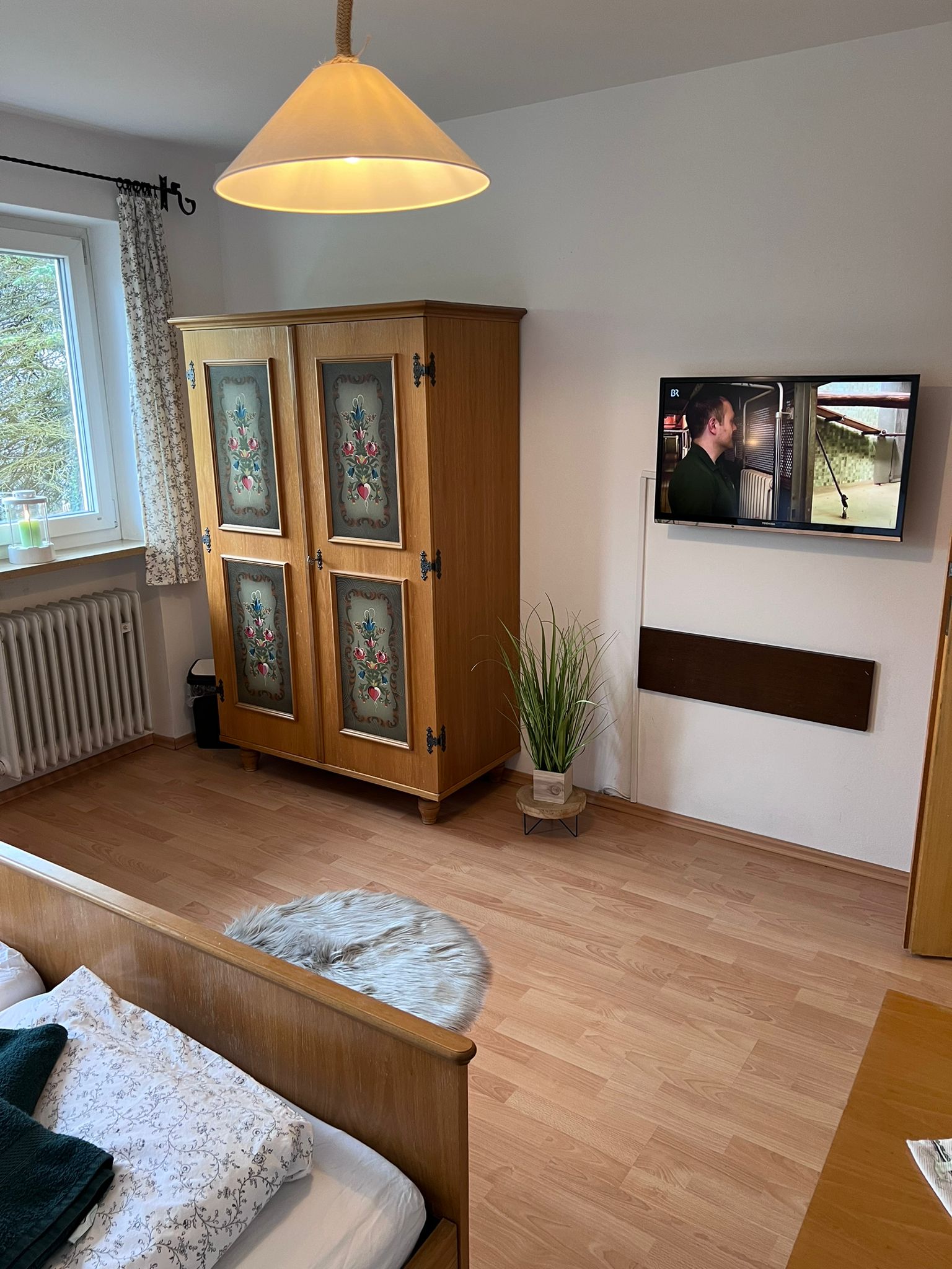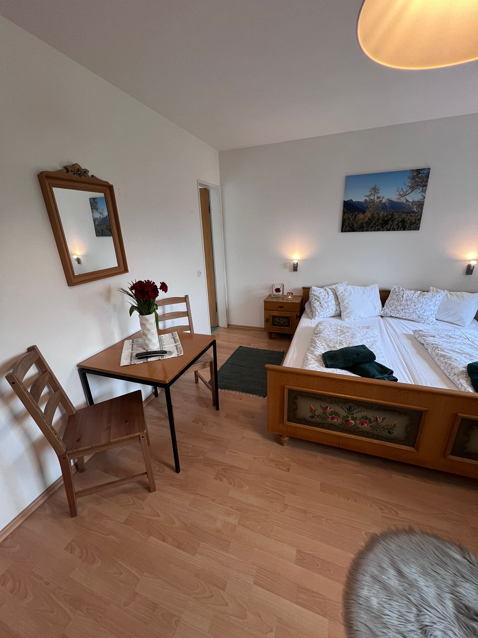 Unser 18qm großes gemütliches Doppel-/Dreibettzimmer im traditionellen bayerischen Stil bietet Ihnen den perfekten Rahmen für einen entspannten Urlaub oder eine Geschäftsreise. Lassen Sie sich vom rustikalen Charme und der komfortablen Ausstattung begeistern.