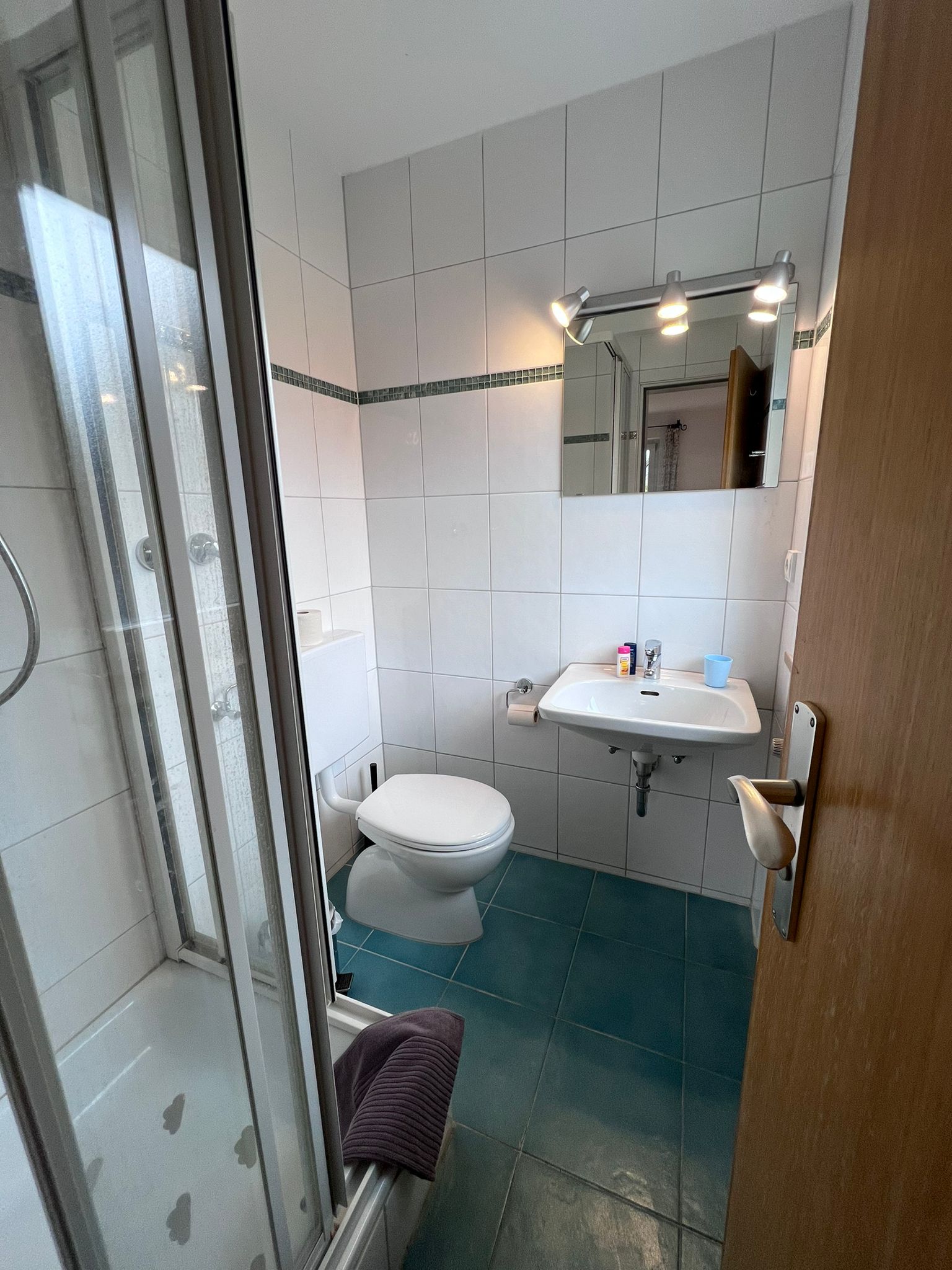Neues Badezimmer mit Dusche und WC: Starten Sie erfrischt in den Tag mit einer Dusche in unserem modernen Bad.