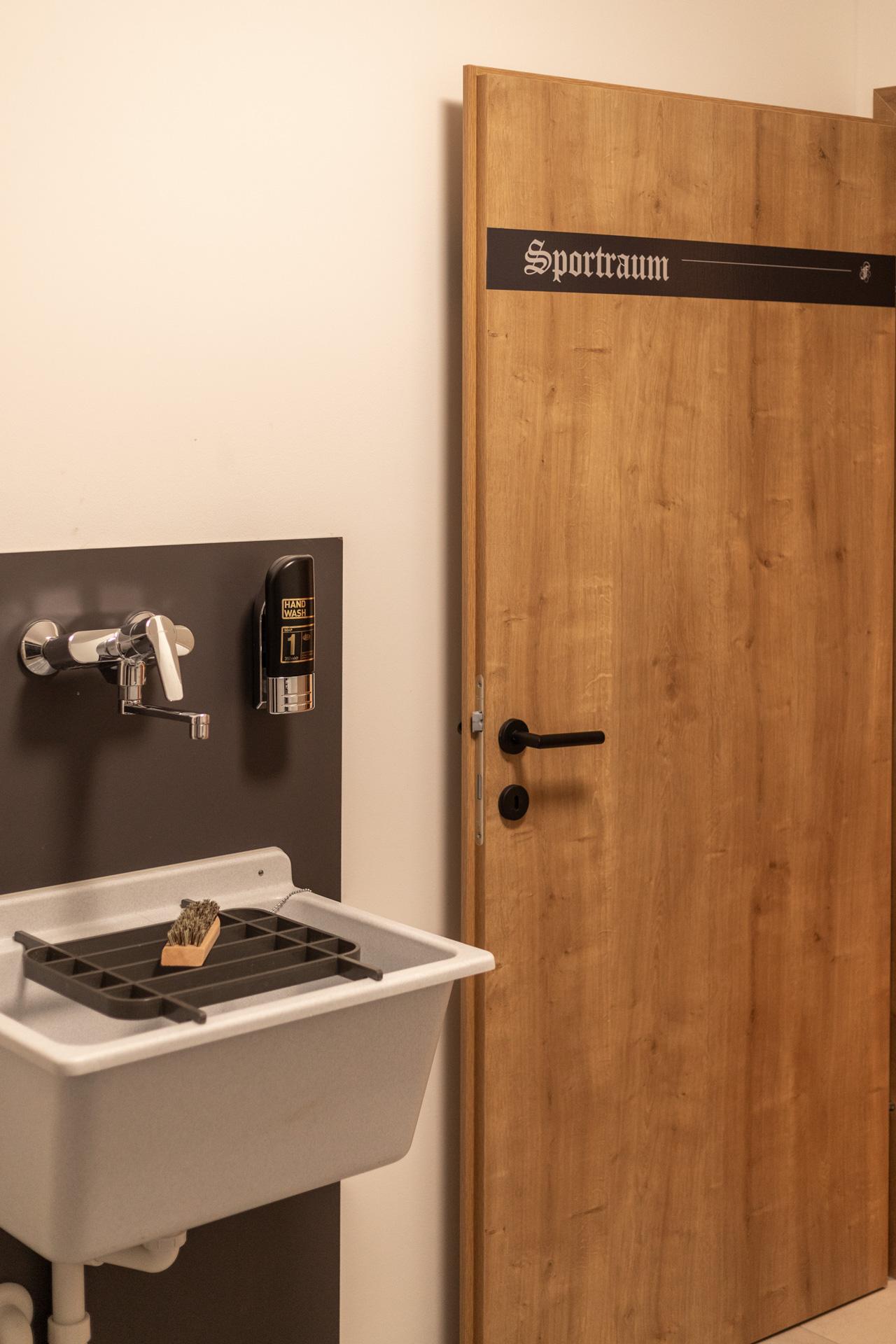 Für deine Sportausrüstung steht dir ein Sportraum mit einem abschließbaren Schrank und einem Skischuhtrockner zur Verfügung. Die Waschmaschine und den Wäschetrockner kannst du gerne gegen eine Gebühr von € 3,-- pro Wasch-/Trockengang benützen. Einen Wäscheständer, Bügelbrett und Bügeleisen stellen wir dir kostenlos zur Verfügung. Auch einen Waschtrog, wo du z.B. deine Bergschuhe nach deiner Bergtour säubern kannst, findest du in diesem Raum.