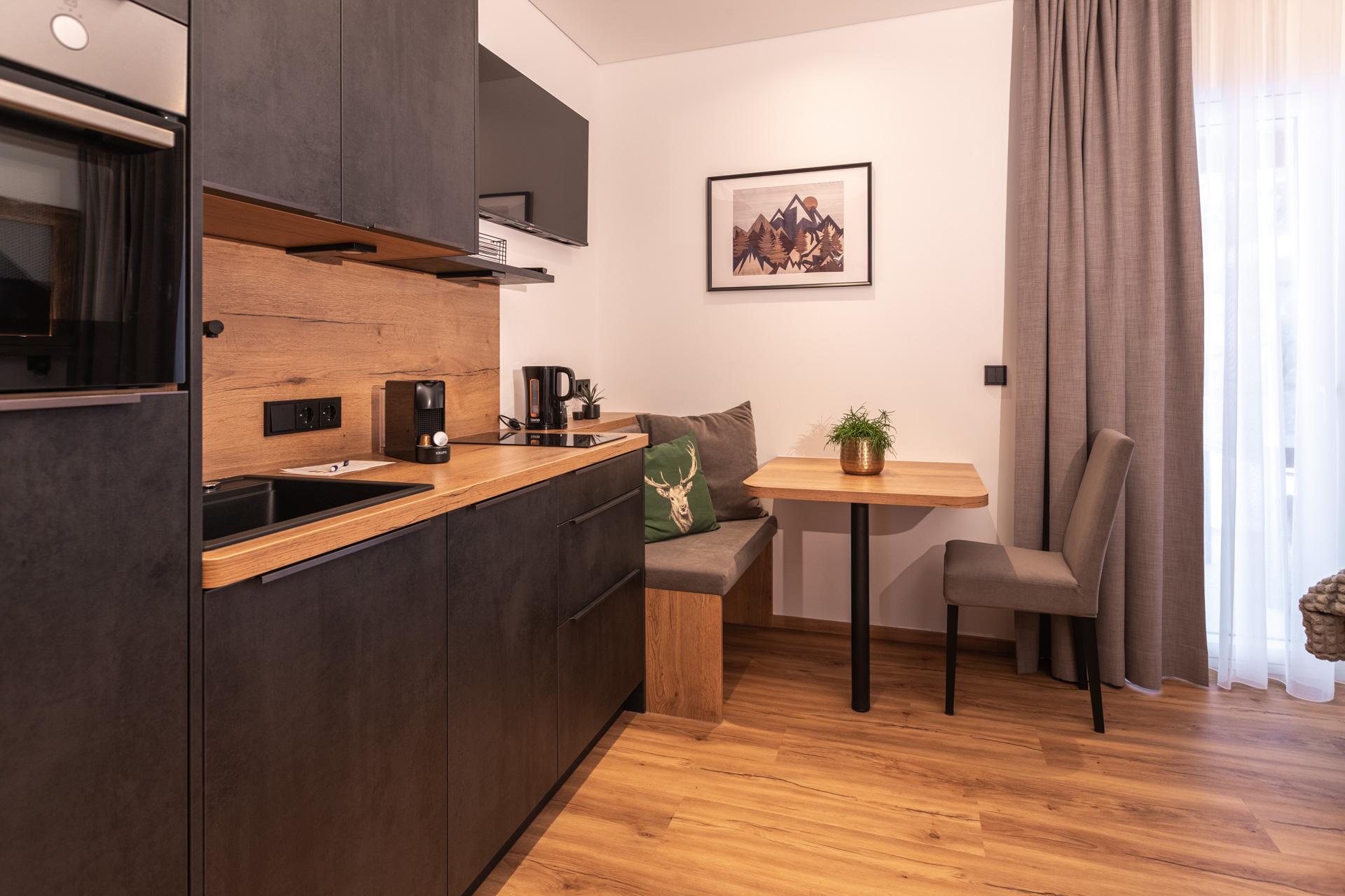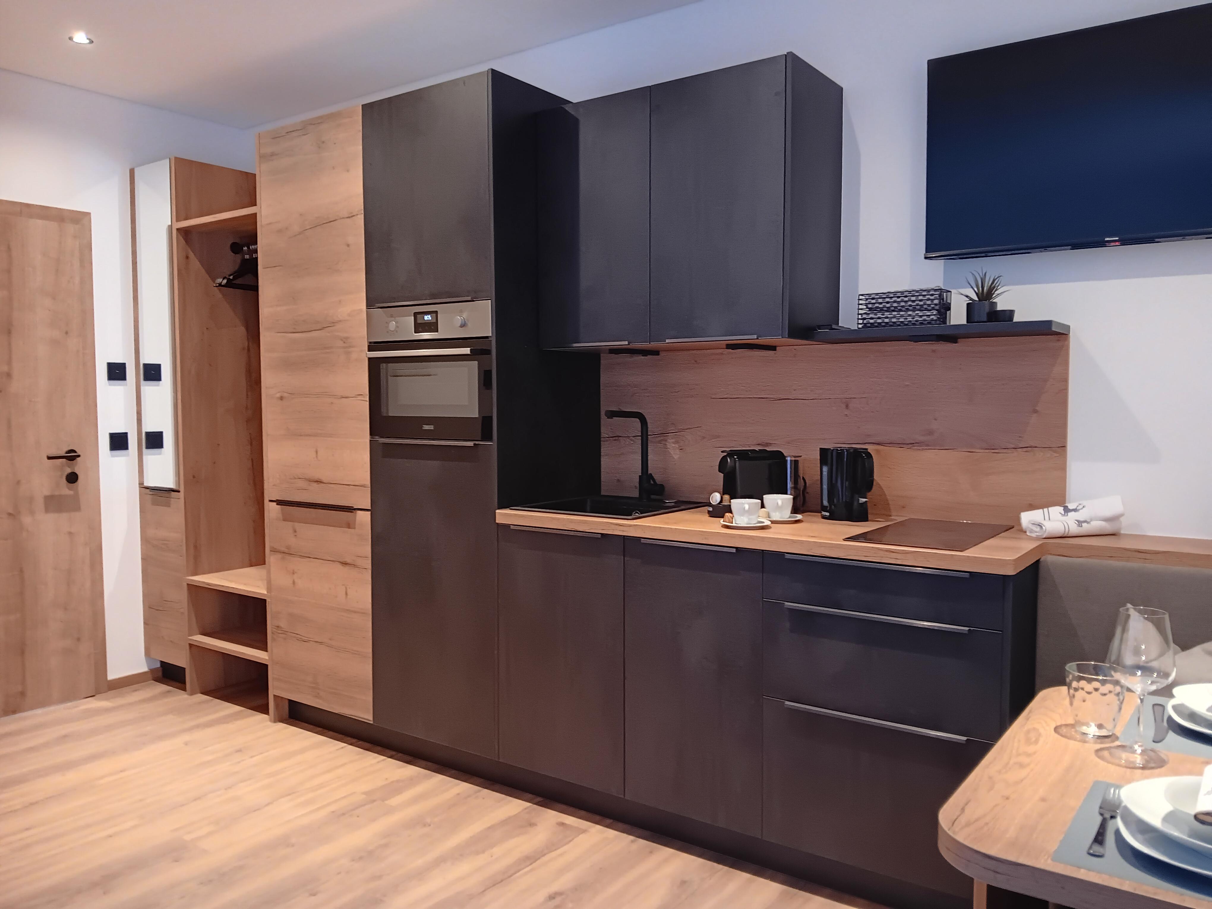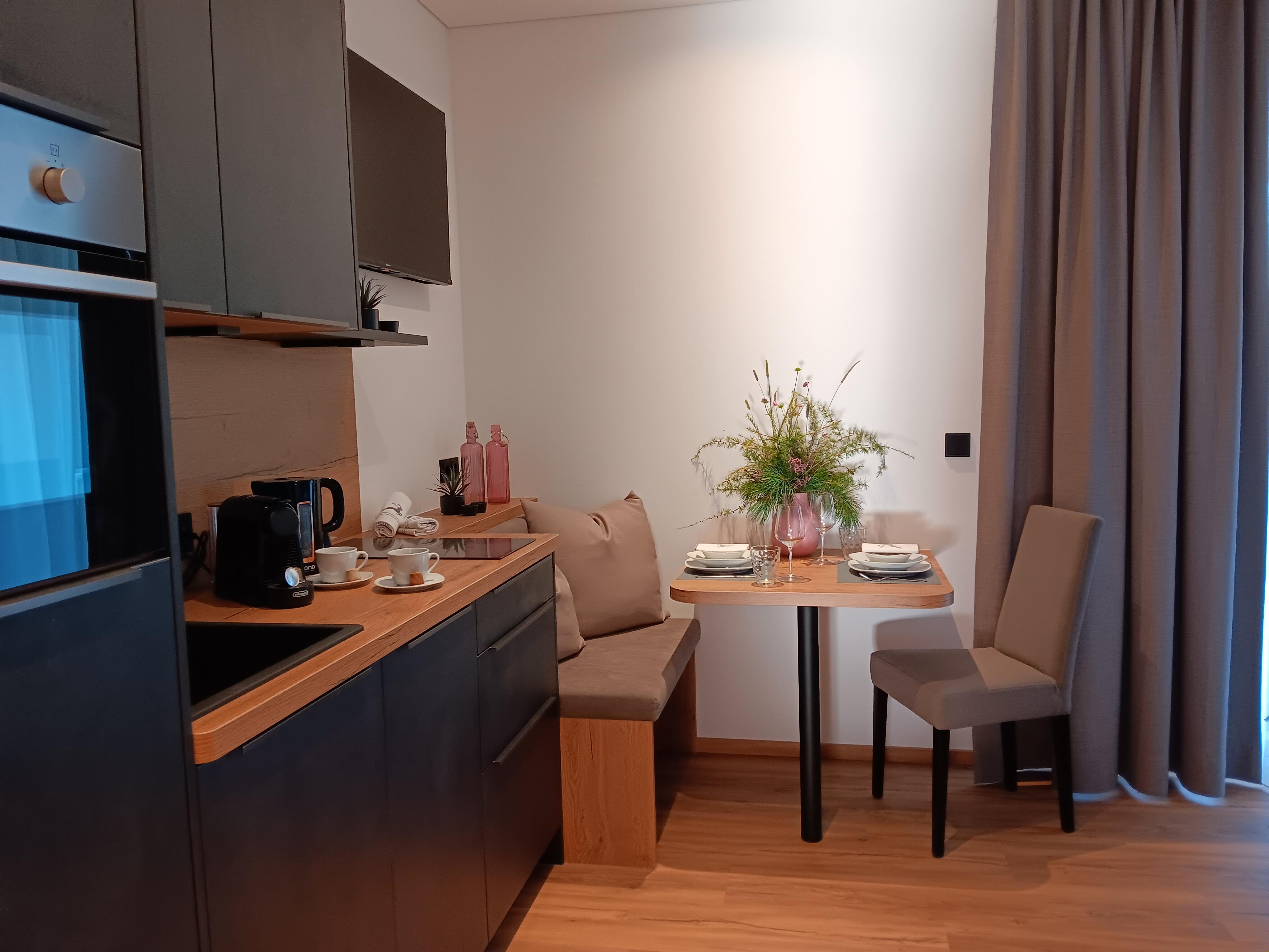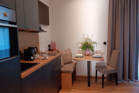 In unserem Studio Stadl #03 können bis zu 2 Personen nächtigen. Es besteht aus Wohn-, Küchen-, Ess- und Schlafbereich. Hier findest du ein Boxspringbett (180 x 200 cm) - natürlich inklusive Bettwäsche. Weiters gibt es einen Wohn-, Küchen- und Essbereich. Die Küche ist voll ausgestattet. Ein Bad mit Dusche und WC befindet sich ebenfalls im Zimmer (Handtücher und WC-Papier ist selbstverständlich kostenlos).