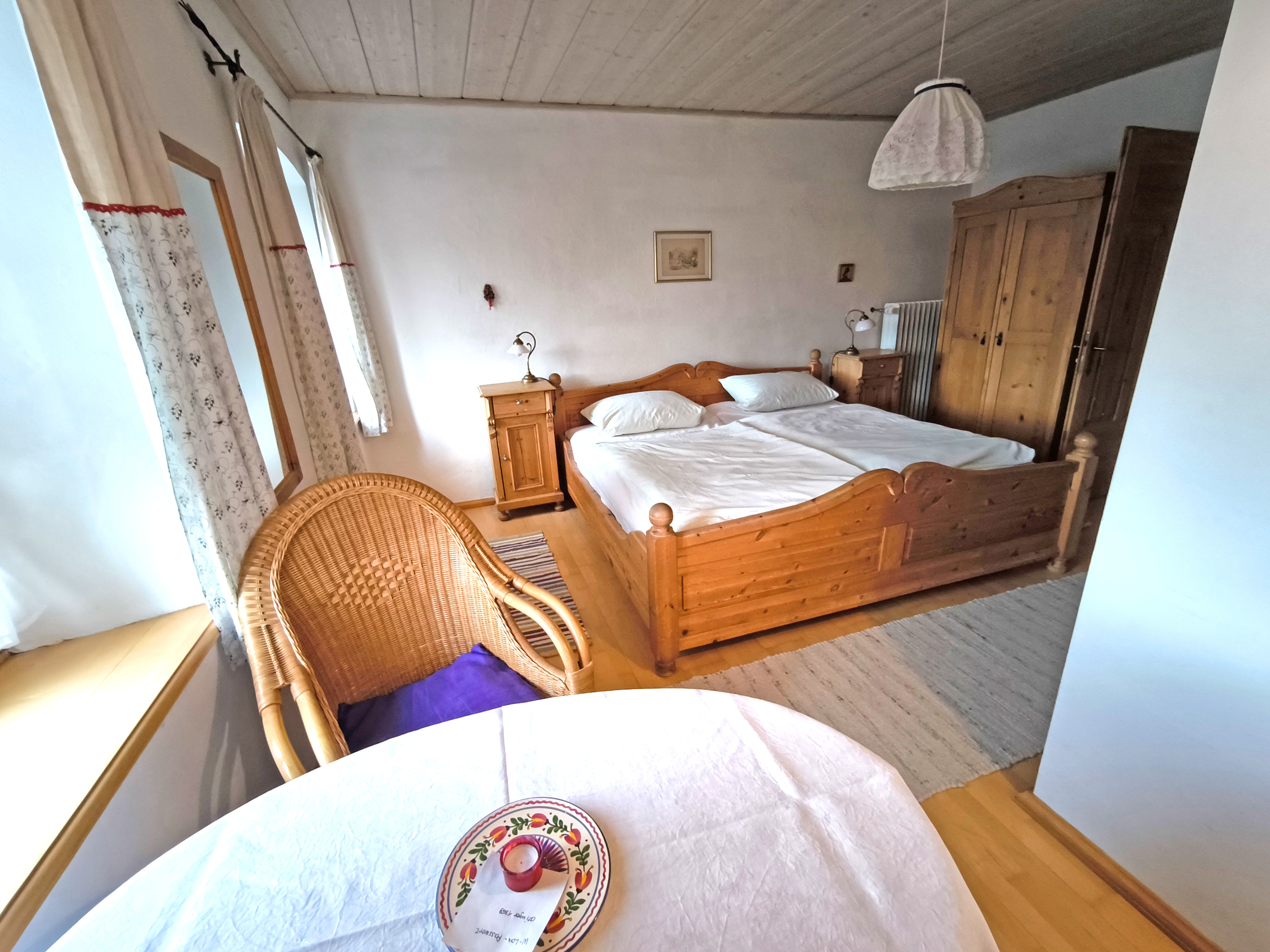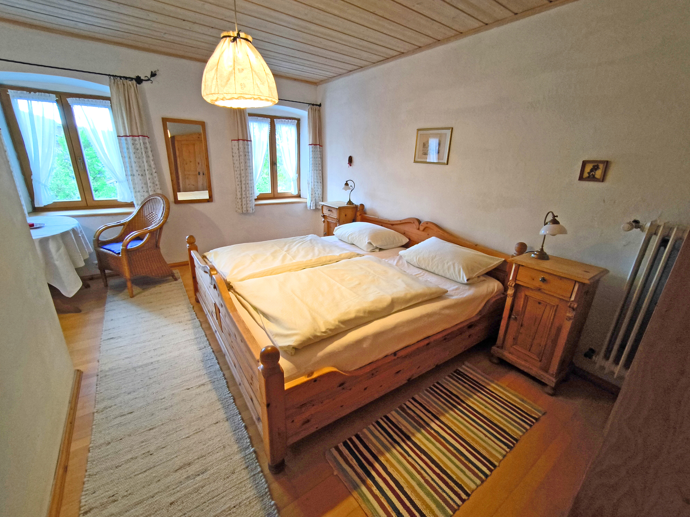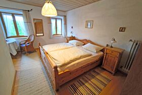 Gemütliches, geräumiges Zimmer mit Doppelbett und Dusche/WC. Behaglich im Alpenländischen Stil mit Holzboden und einer Sitzecke eingerichtet. Auf Nachfrage und gegen Aufpreis kann ein Zustell- oder Babybett aufgestellt werden.
