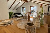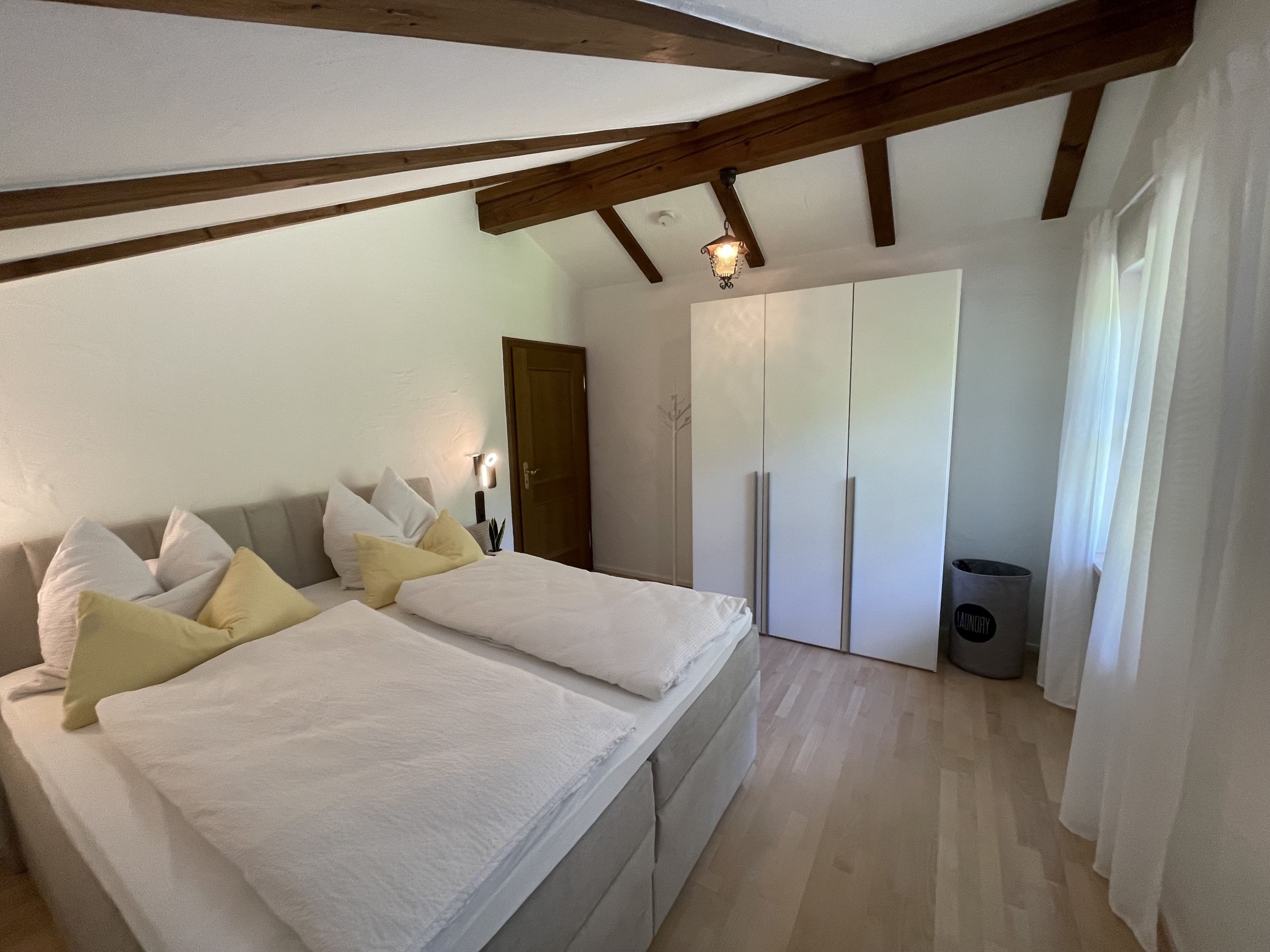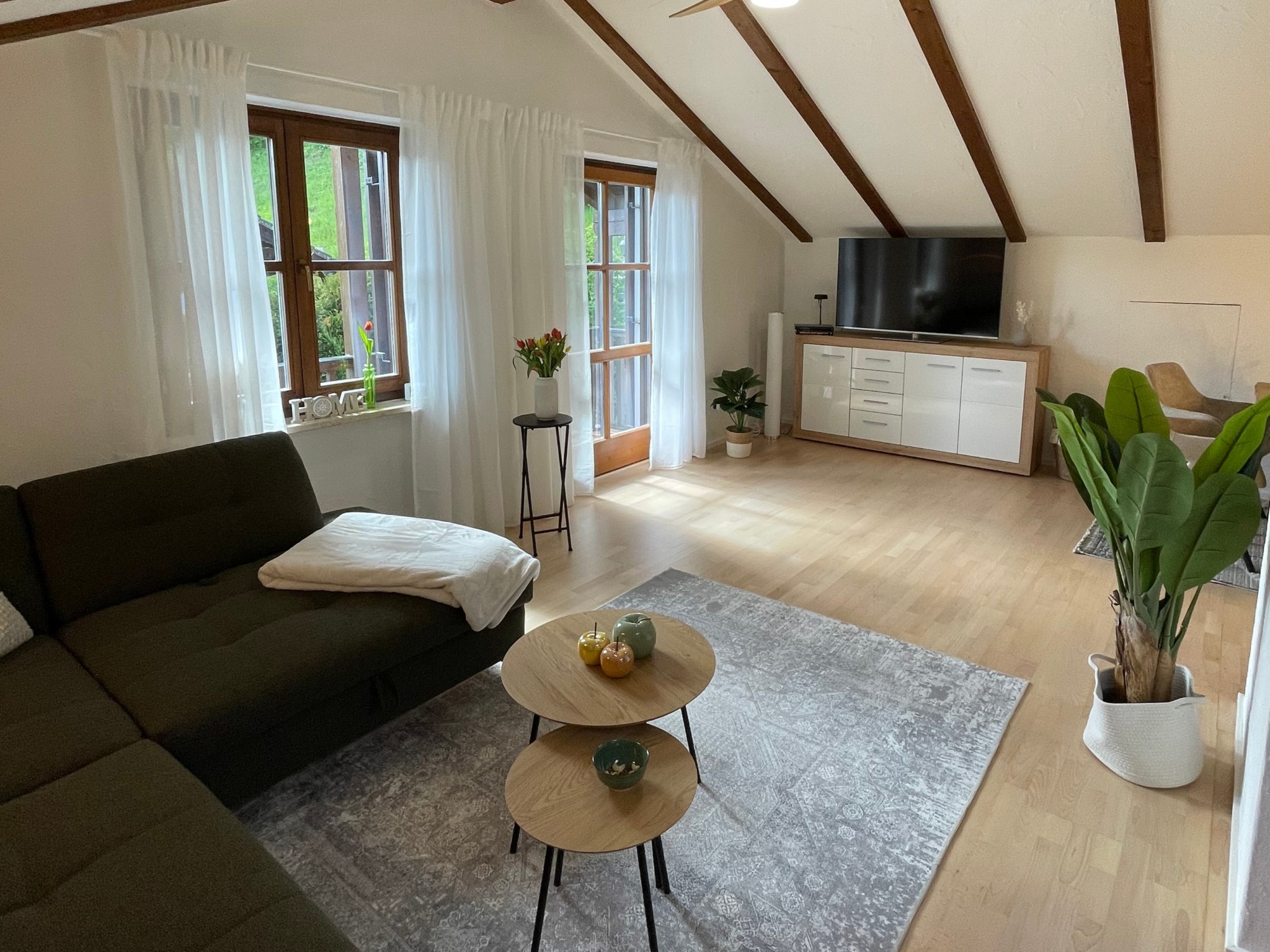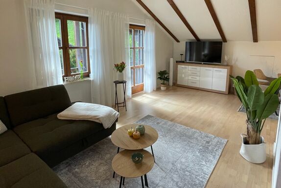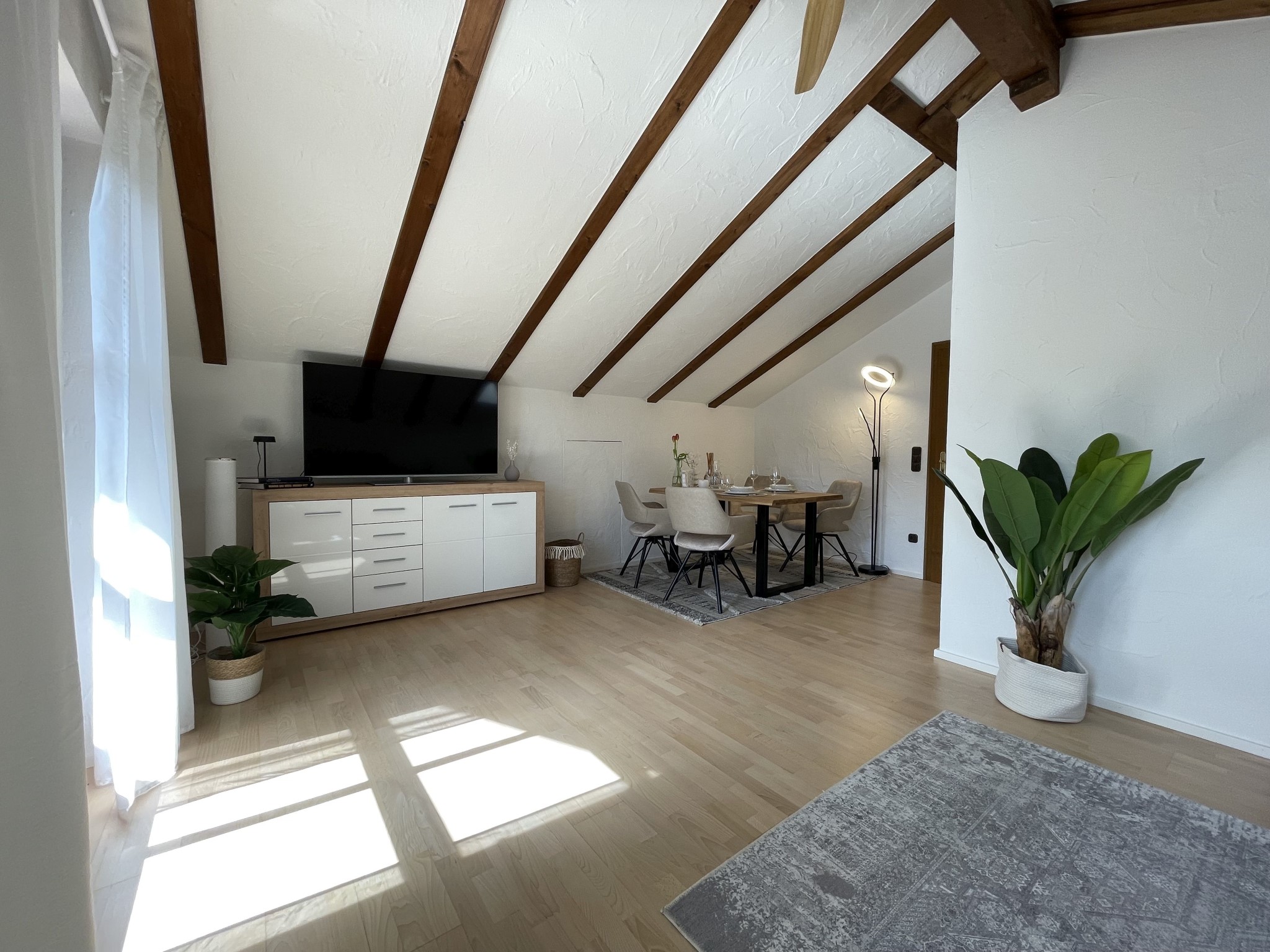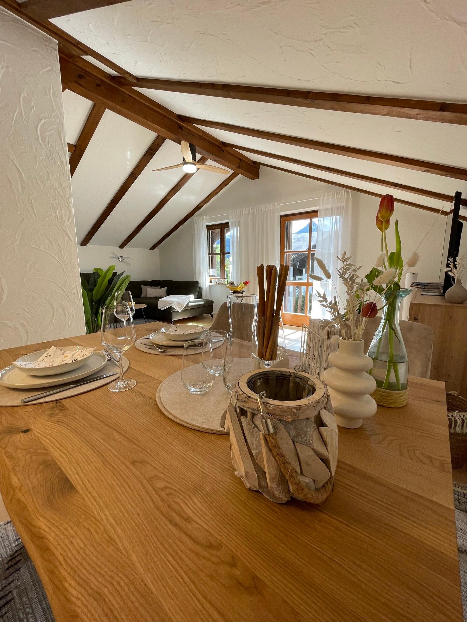 Herzlich willkommen in unserer liebevoll gestalteten 70 qm Ferienwohnung in Nonn, einem charmanten Ortsteil von Bad Reichenhall. Diese Wohnung bietet erstklassigen Komfort und einen Balkon mit Bergblick. Das Schlafzimmer verfügt über ein gemütliches Doppelbett und einen geräumigen Kleiderschrank. Im Wohnzimmer mit Dachschrägen finden Sie eine bequeme Couch und einen Flachbild-TV. Die voll ausgestattete Küche mit Geschirrspüler, Backofen, Toaster und Kühlschrank lässt keine Wünsche offen. Der Essbereich lädt zum Verweilen ein. Das Badezimmer ist mit einer Badewanne ausgestattet. Genießen Sie den Abend auf dem Balkon mit dem wunderschönen Bergblick.