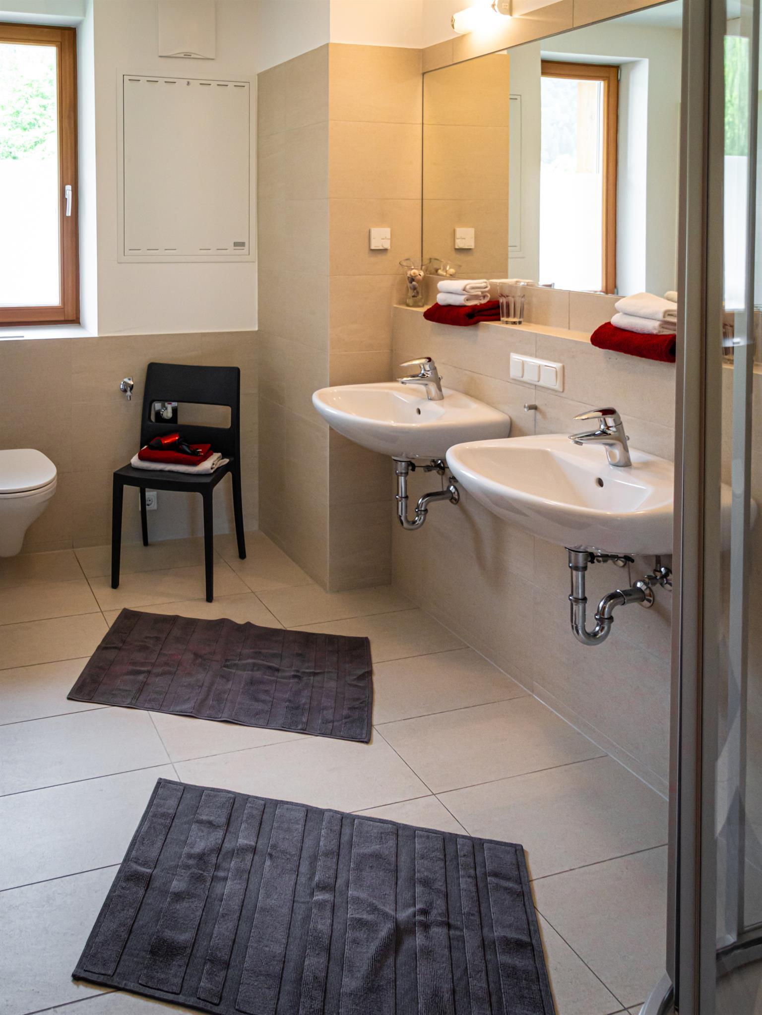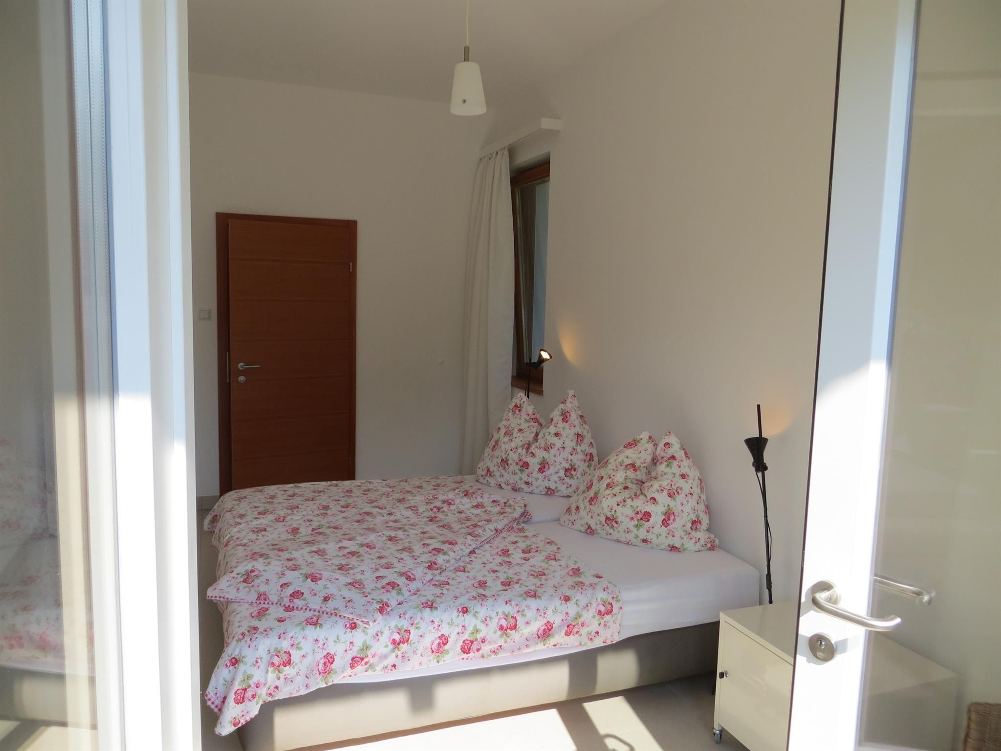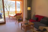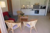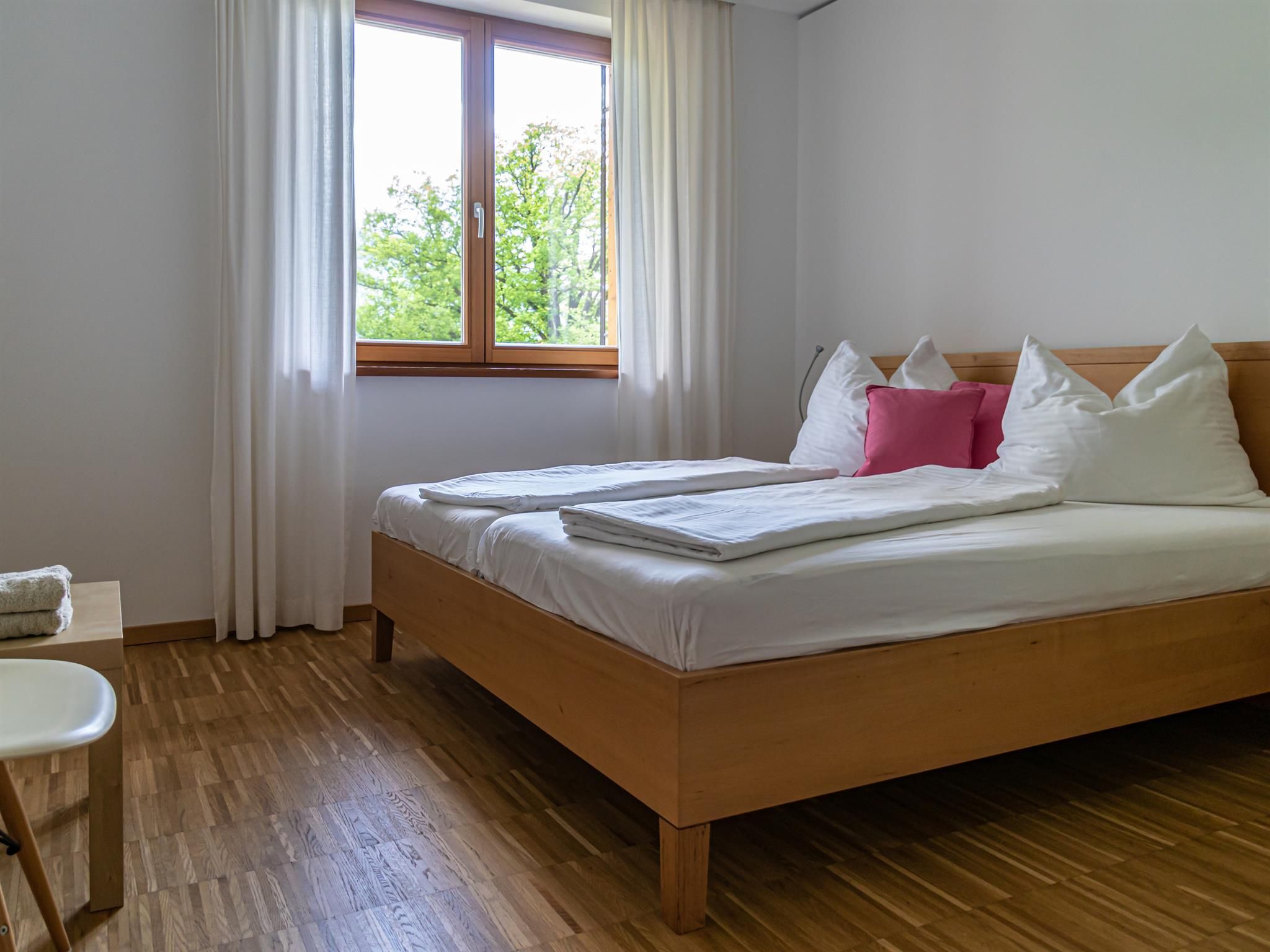 Großer überdachter Wohnbalkon mit Tisch und Liegen, Südlage, direkt am See und Strandbad. Externer Sonnenschutz, 2 Schlafzimmer, großer Wohnraum mit Küche, Geschirrspüler, Backofen, Ceranfeld, Wasserkocher, Kaffeemaschine, gemütlicher Esstisch, geräumiges Badezimmer mit zwei Waschbecken und Föhn, Betten 4 bis 6 Personen.