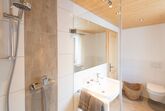 * Bad mit Dusche, Föhn und Kosmetikspiegel