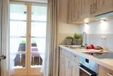 * komplett ausgestattete Küche mit Spülmaschine, Backofen und Mikrowelle