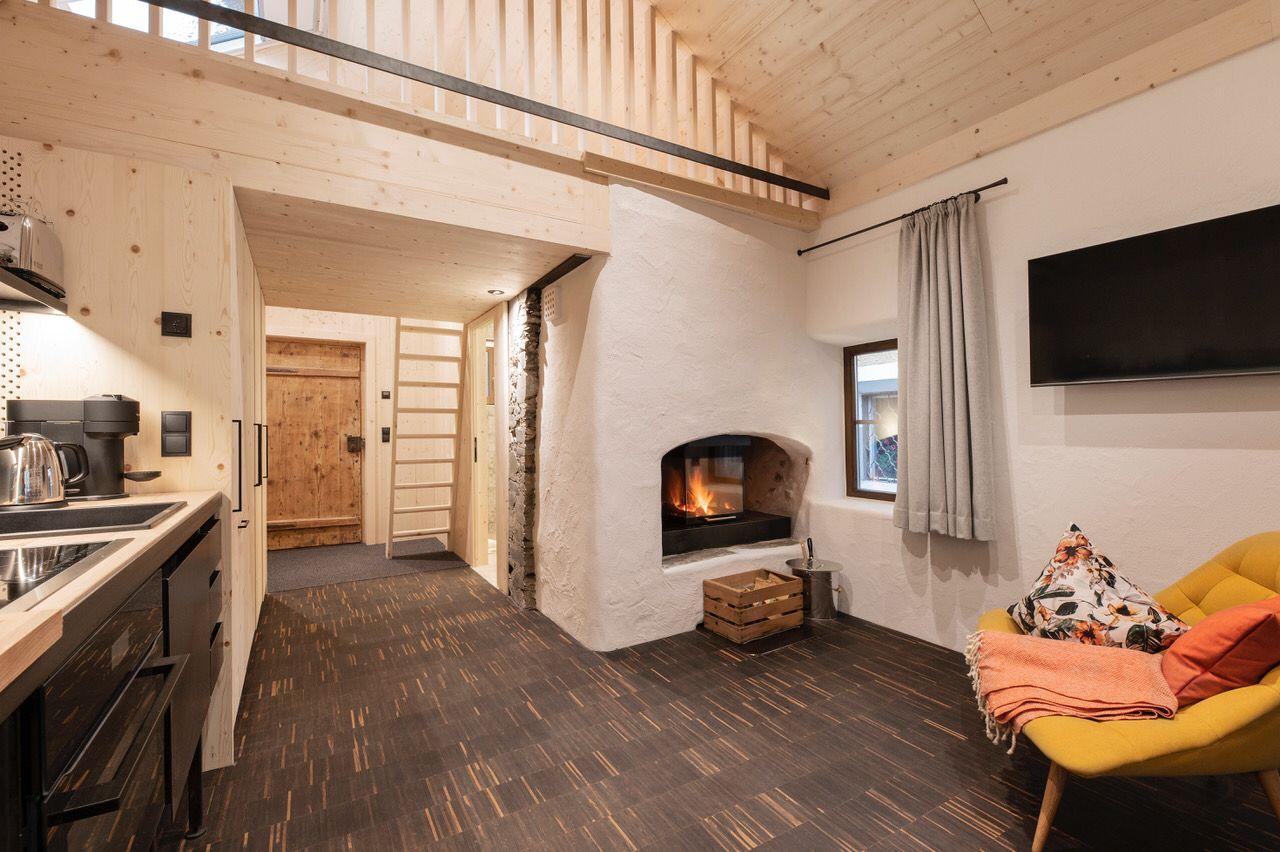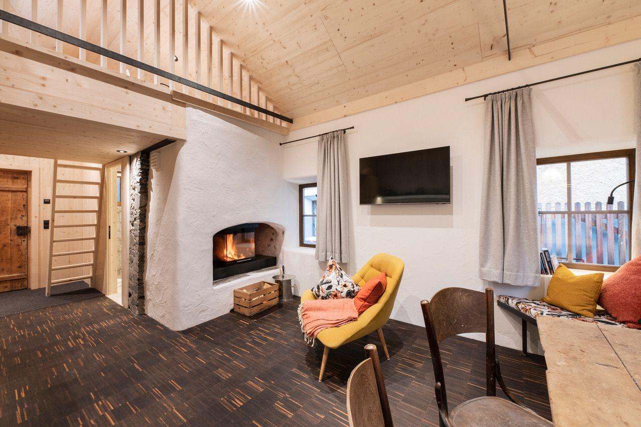 Ausgezeichnet mit 4sEdelweiß, architektonisch einzigartig, komfortabel, für 10 Pers. (7 bzw. 3 Pers. in 2 Appartements) BergsteigerSEIN (SEIN im Dialekt=eine Bleibe haben) SauWOHL (ehem. Schweinestall)