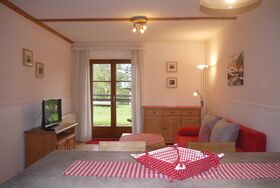 Darüberhinaus dürfen Sie die Spielwiese des benachbarten Bauernhof Almfrieden mitnutzen oder dort die Tiere besuchen.