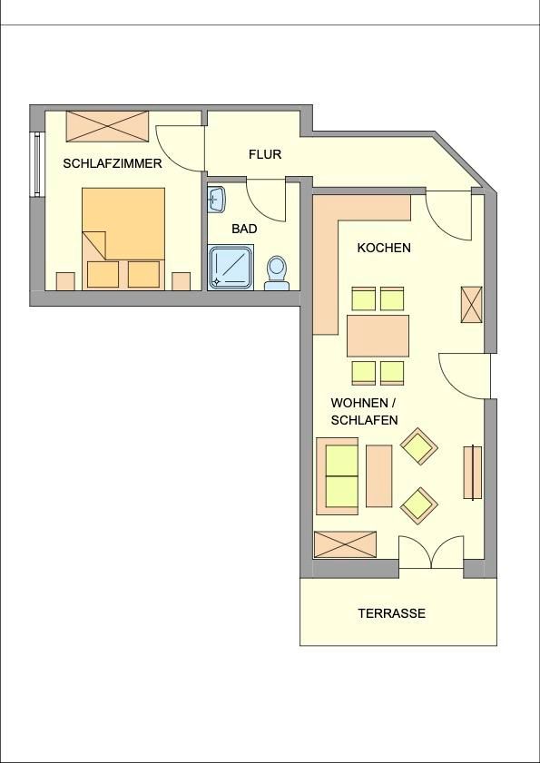 2-Raum-Ferienwohnung für max. 4 Personen (40 qm)