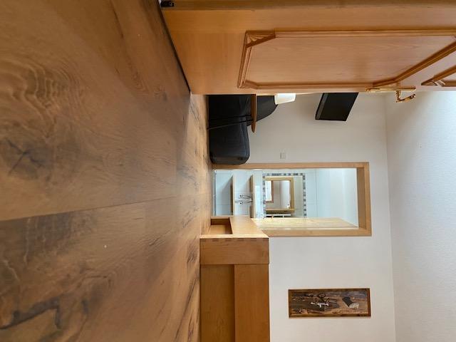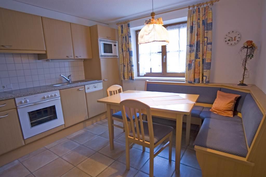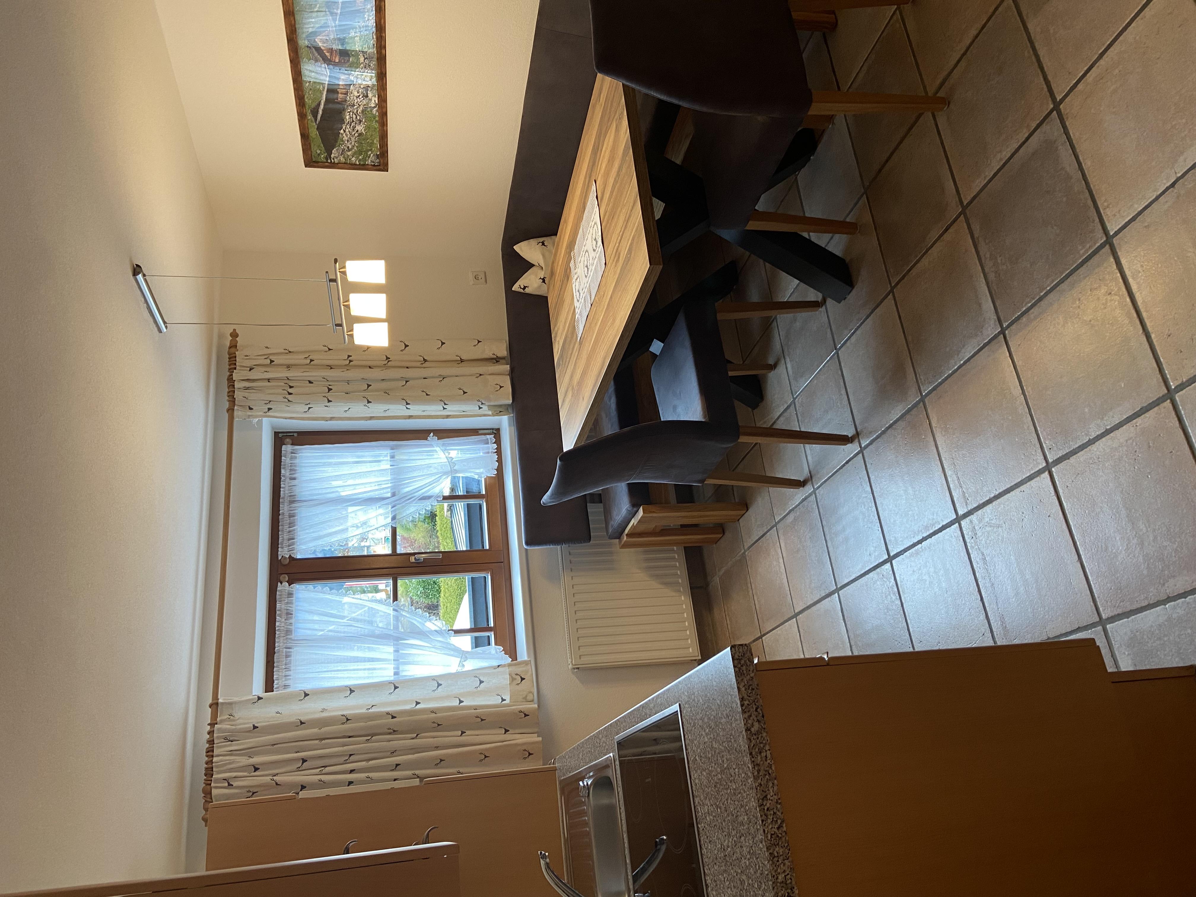 Große Wohnküche komplett eingerichtet mit Geschirrspüler, Mikrowelle, Kühlschrank mit Tiefkühlfach, Kapsel-Kaffeemaschine etc.