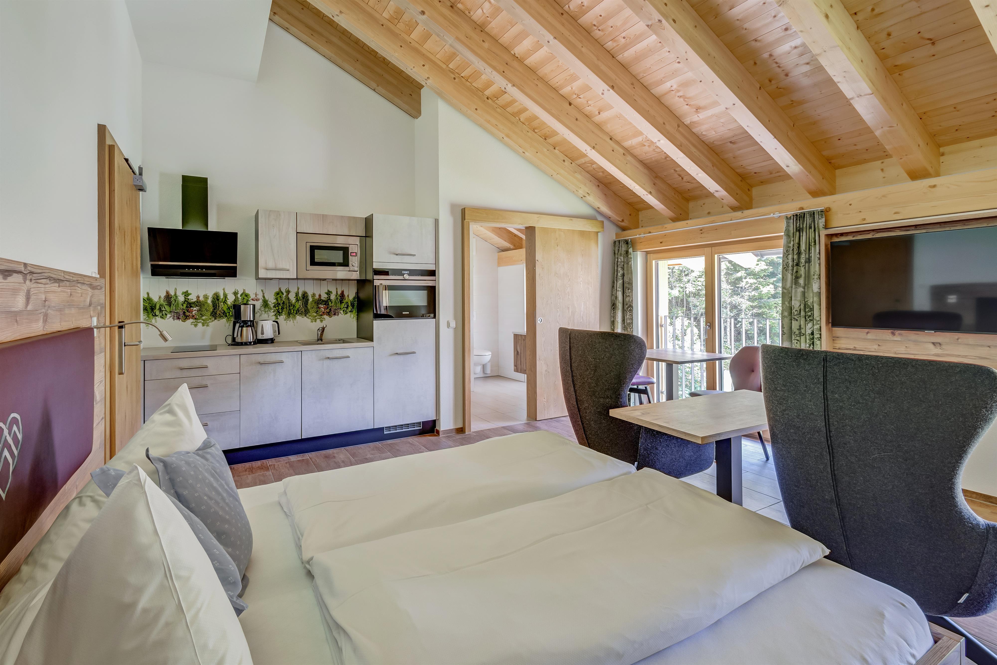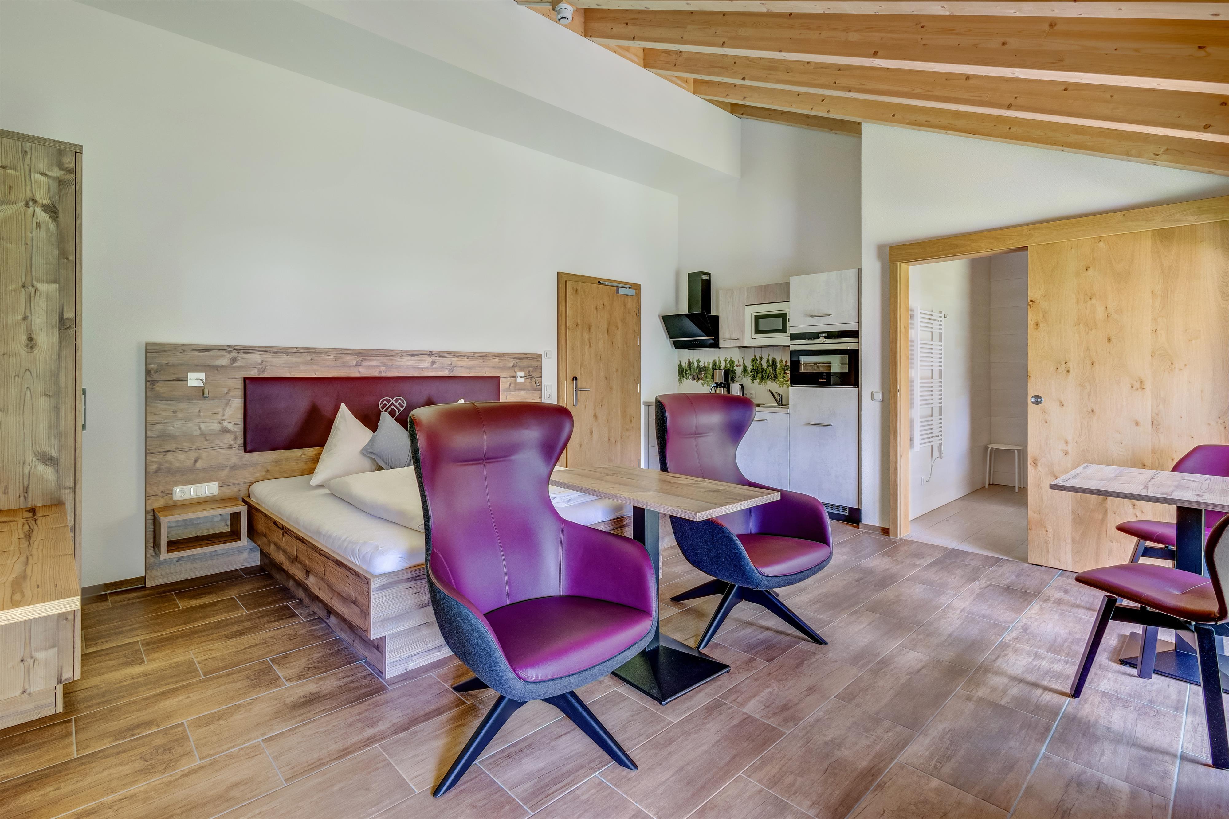 Gemütliche und herzlich eingerichtete Zimmer und Appartements sowie eine 90 m² große Wellnessoase laden ein den Alltagsstress zu vergessen und wieder einmal richtig durch zu Atmen.