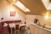 Unsere südseitige Dachgeschosswohnung bietet Platz für 4 - 6 Personen und enthält zwei großzügige Schlafzimmer mit je einem Badezimmer mit Dusche und WC, Fön und Handtuchtrockner, und noch ein separates WC, Zimmersafe, Balkon, Wohnküche in der Dachschräge mit Spülmaschine, Backofen und Mikrowelle, Toaster, Cafemaschine und Wasserkocher, gemütliches Wohnzimmer mit Balkon, separate Essecke und Couchlandschaft mit, Radio mit CD Player und Sat- TV mit DVD Player.