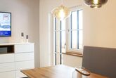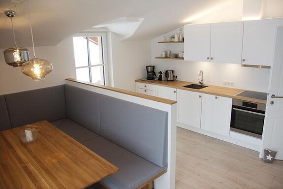 Ausstattung: 3 Doppelzimmer, 2 neue Bäder mit Regendusche und WC, Esszimmer und offene Küche mit Einbaubank und vollständiger Küchenausstattung inklusive Kaffeemaschine, Wasserkocher, Toaster, etc., große Dachterrasse und Balkon.