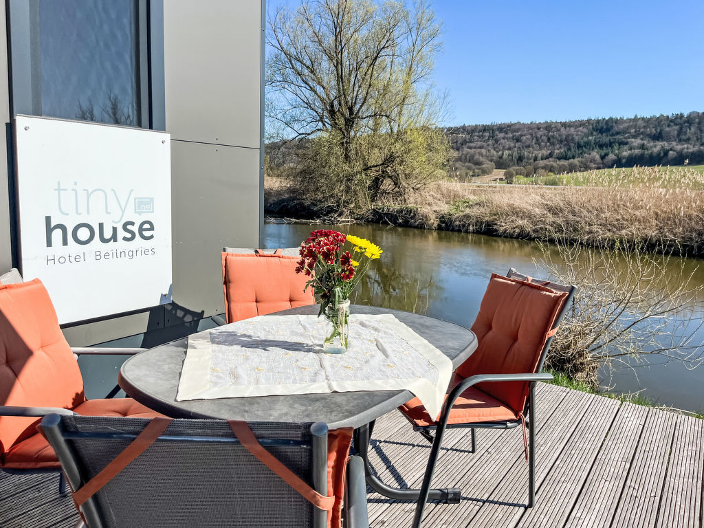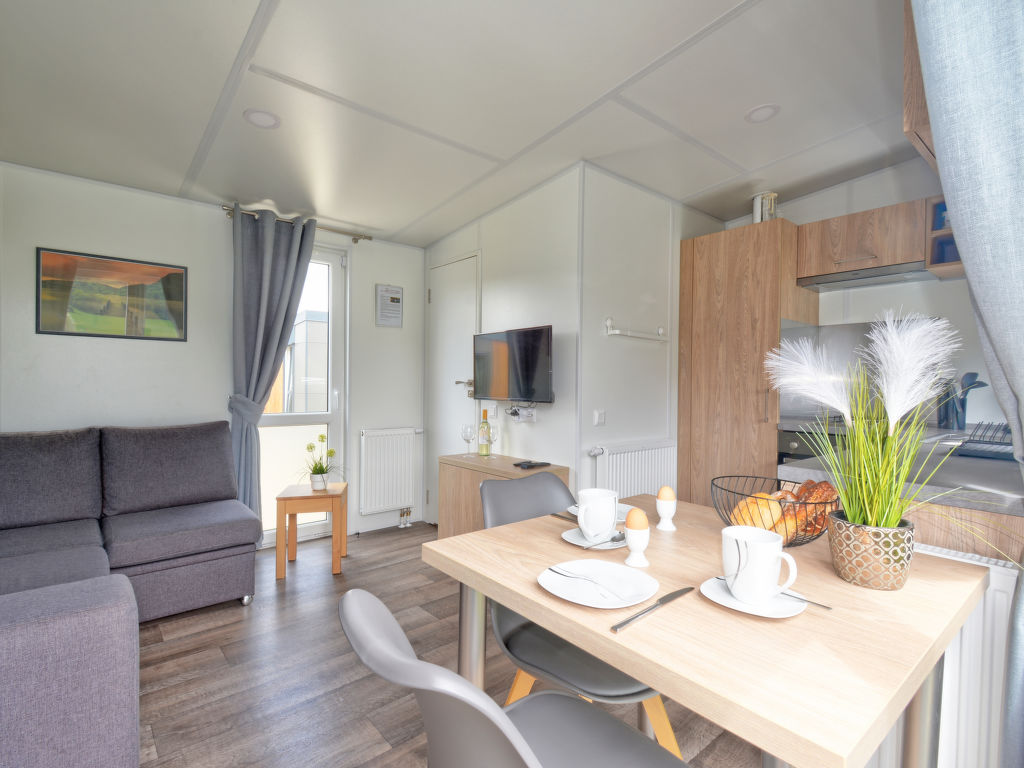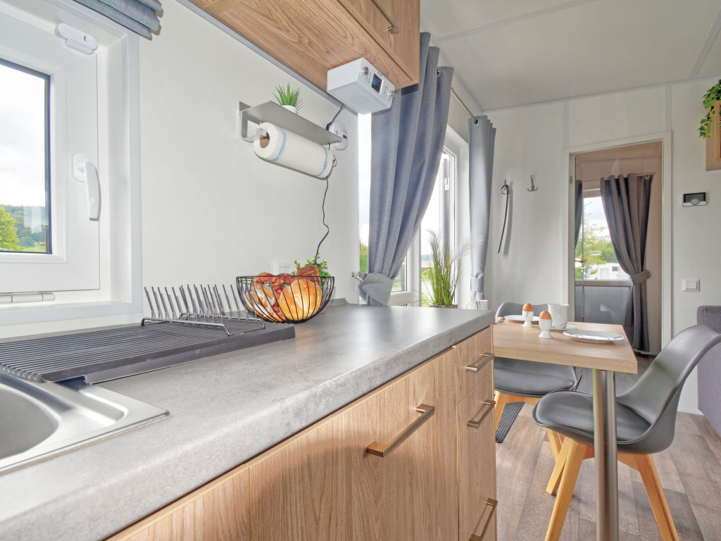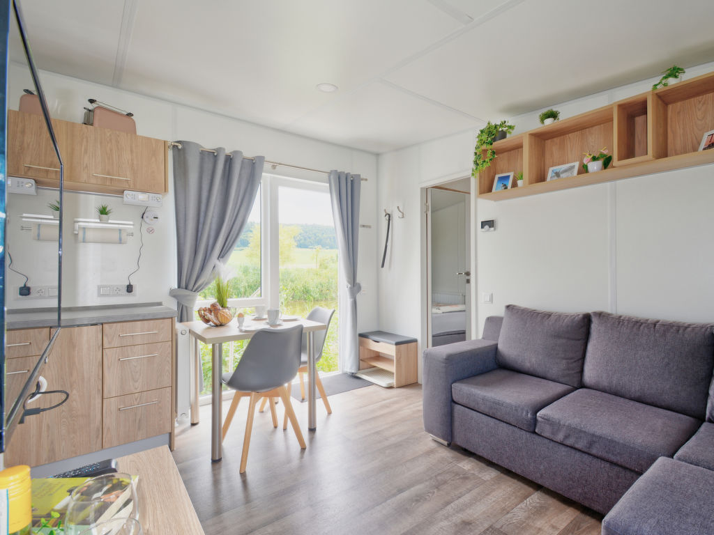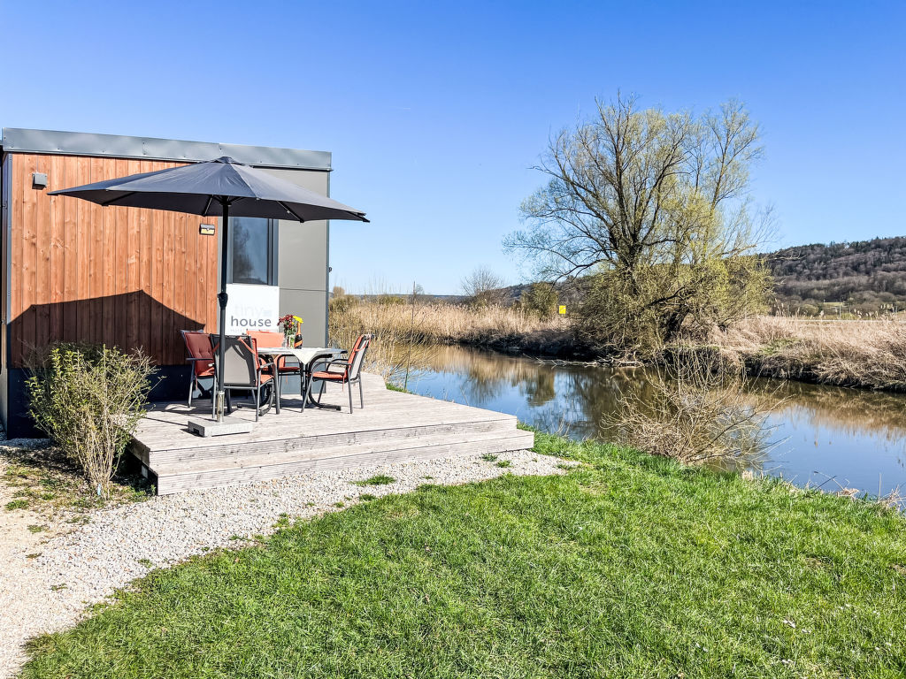 Tiny Haus Lieblingsplatz, 2-Zimmer-Mobilheim 25 m2. Objekt geeignet für 2 Erwachsene + 2 Kinder. Gemütlich eingerichtet: Wohn-/Schlafzimmer mit 1 Diwanbett (120 cm, Länge 170 cm), Sat-TV. 1 Zimmer mit 1 franz. Bett (140 cm, Länge 200 cm). Offene Küche (Backofen, Gasherd, 2 Flammen, Wasserkocher, elektrische Kaffeemaschine). Dusche/WC. G-Heizung. 2 Terrassen. Terrassenmöbel. Parkplatz in 50 m. Bitte beachten: Nichtraucher-Haus.