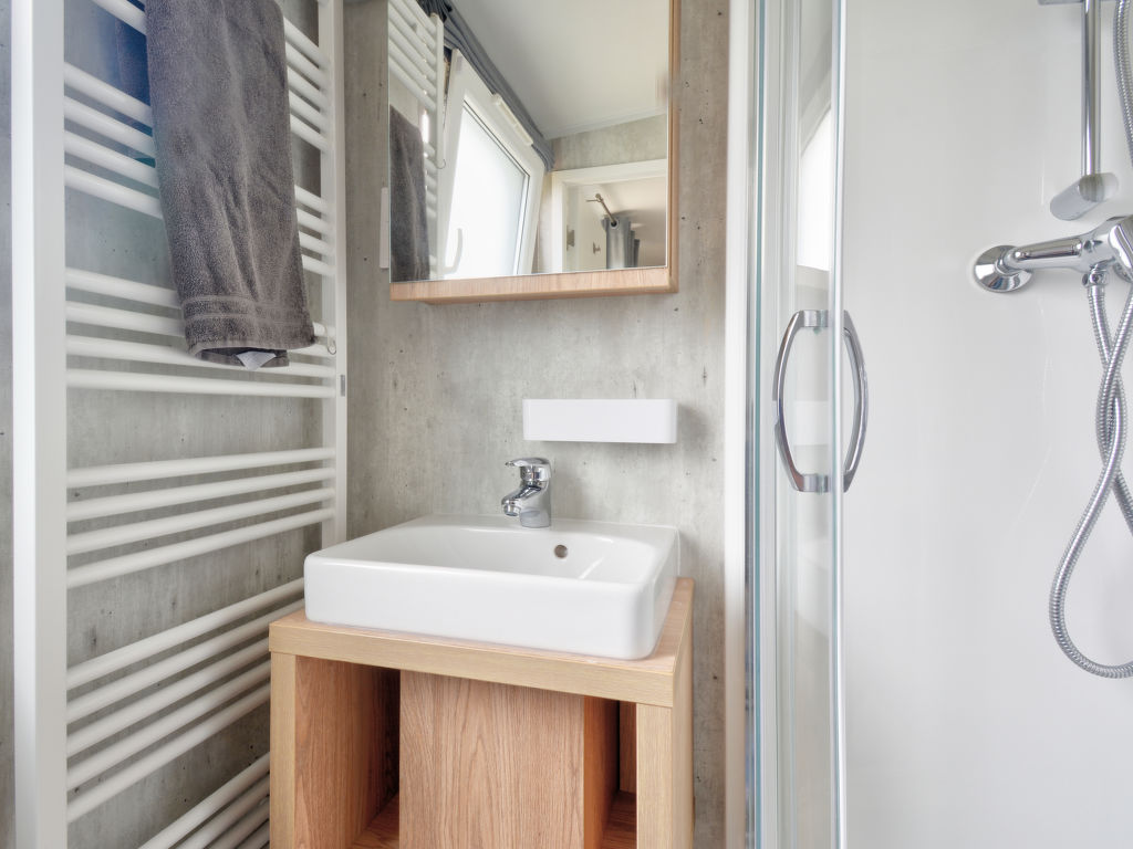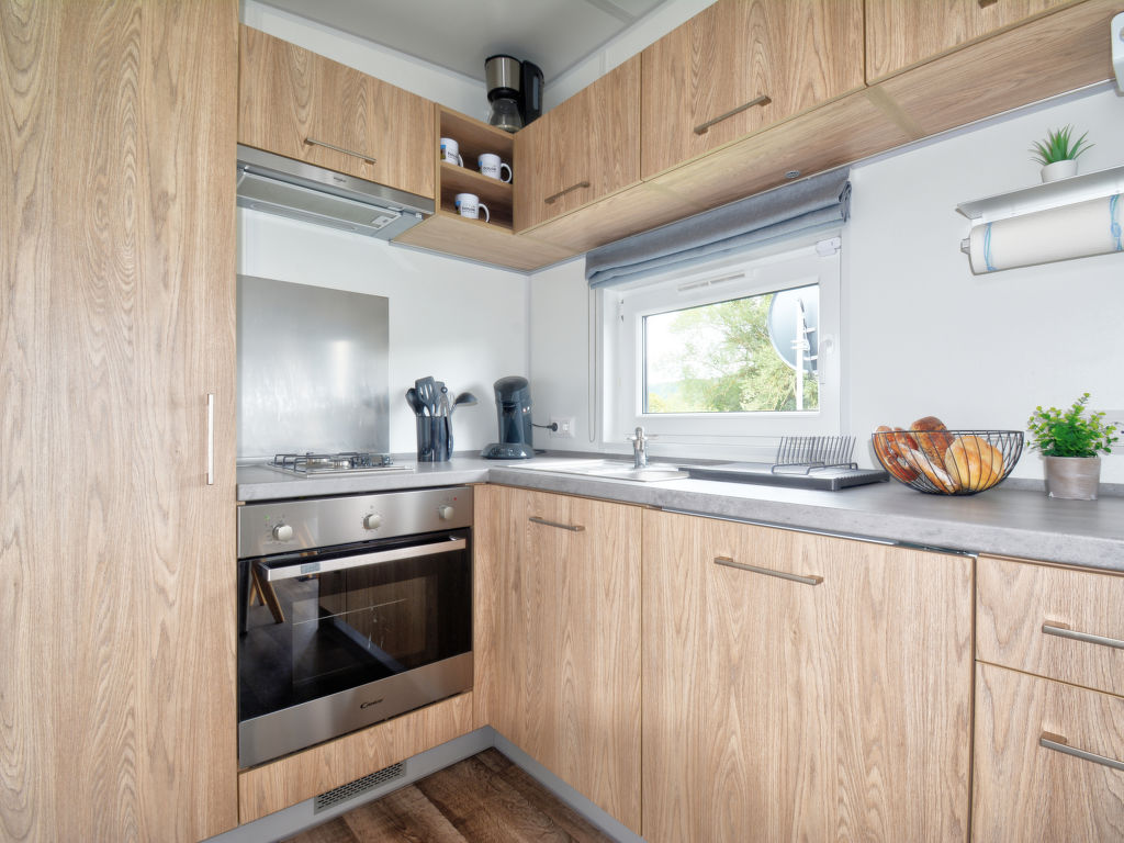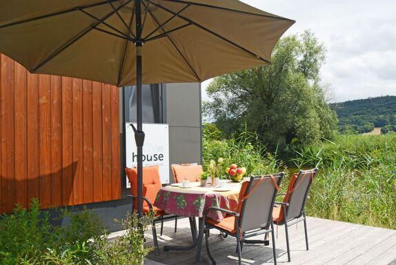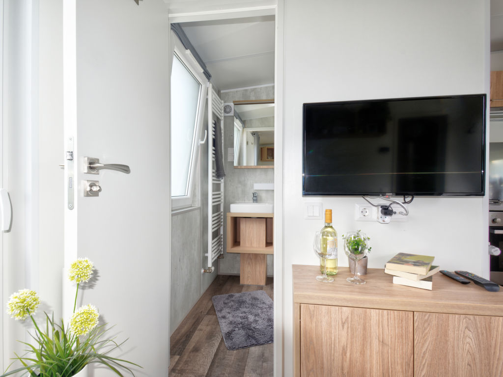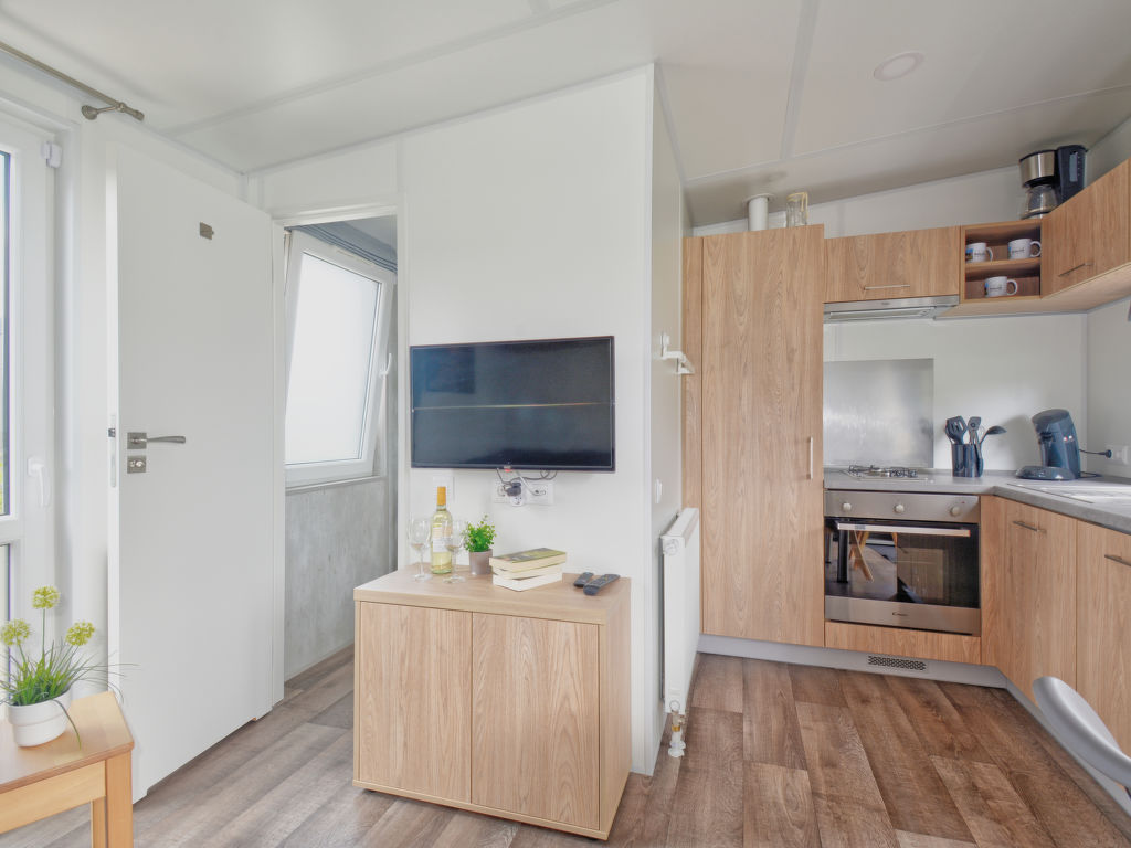 Tiny Haus Lieblingsplatz, 2-Zimmer-Mobilheim 25 m2. Objekt geeignet für 2 Erwachsene + 2 Kinder. Gemütlich eingerichtet: Wohn-/Schlafzimmer mit 1 Diwanbett (120 cm, Länge 170 cm), Sat-TV. 1 Zimmer mit 1 franz. Bett (140 cm, Länge 200 cm). Offene Küche (Backofen, Gasherd, 2 Flammen, Wasserkocher, elektrische Kaffeemaschine). Dusche/WC. G-Heizung. 2 Terrassen. Terrassenmöbel. Parkplatz in 50 m. Bitte beachten: Nichtraucher-Haus.