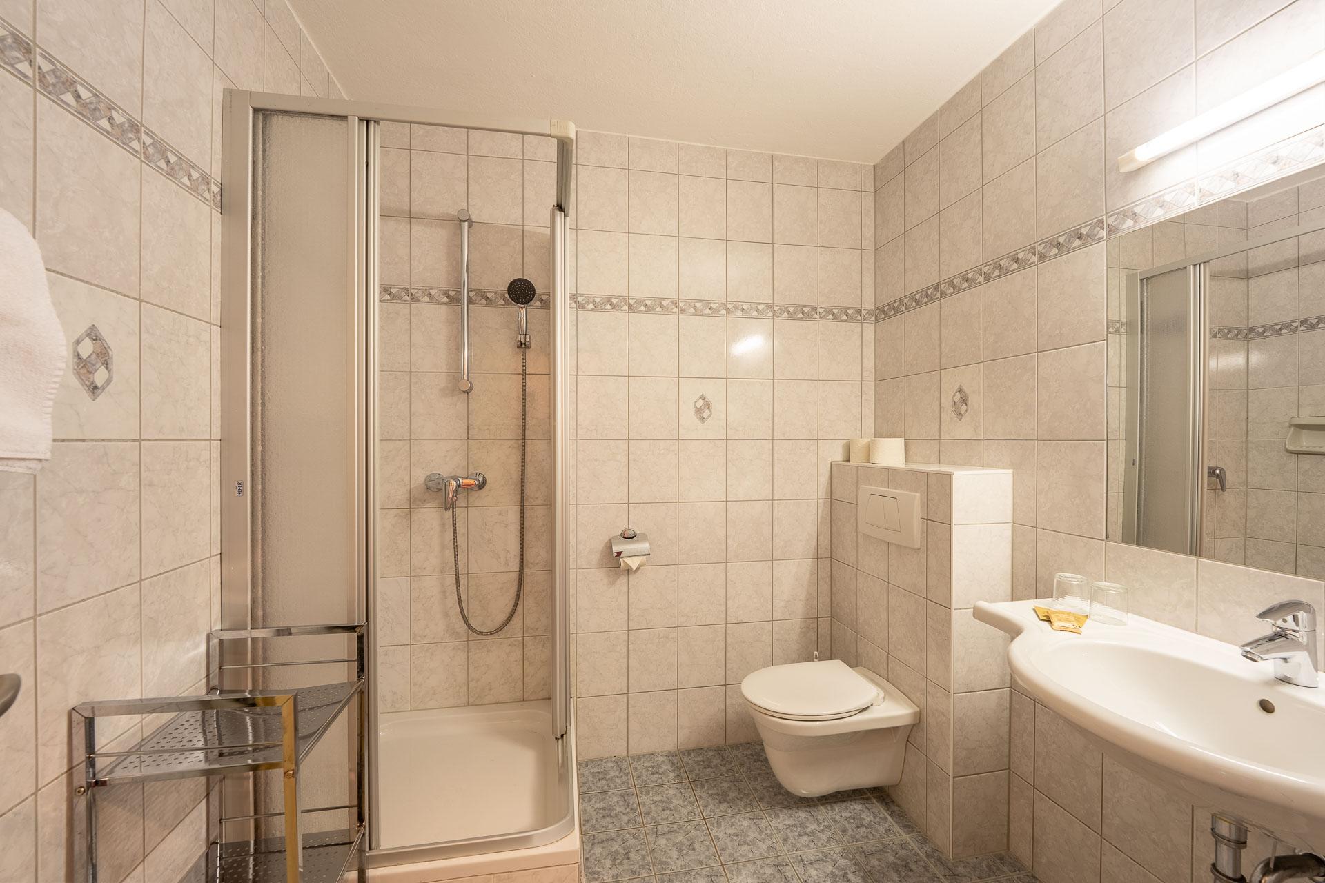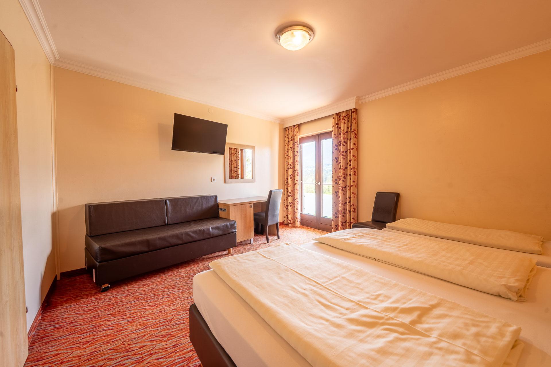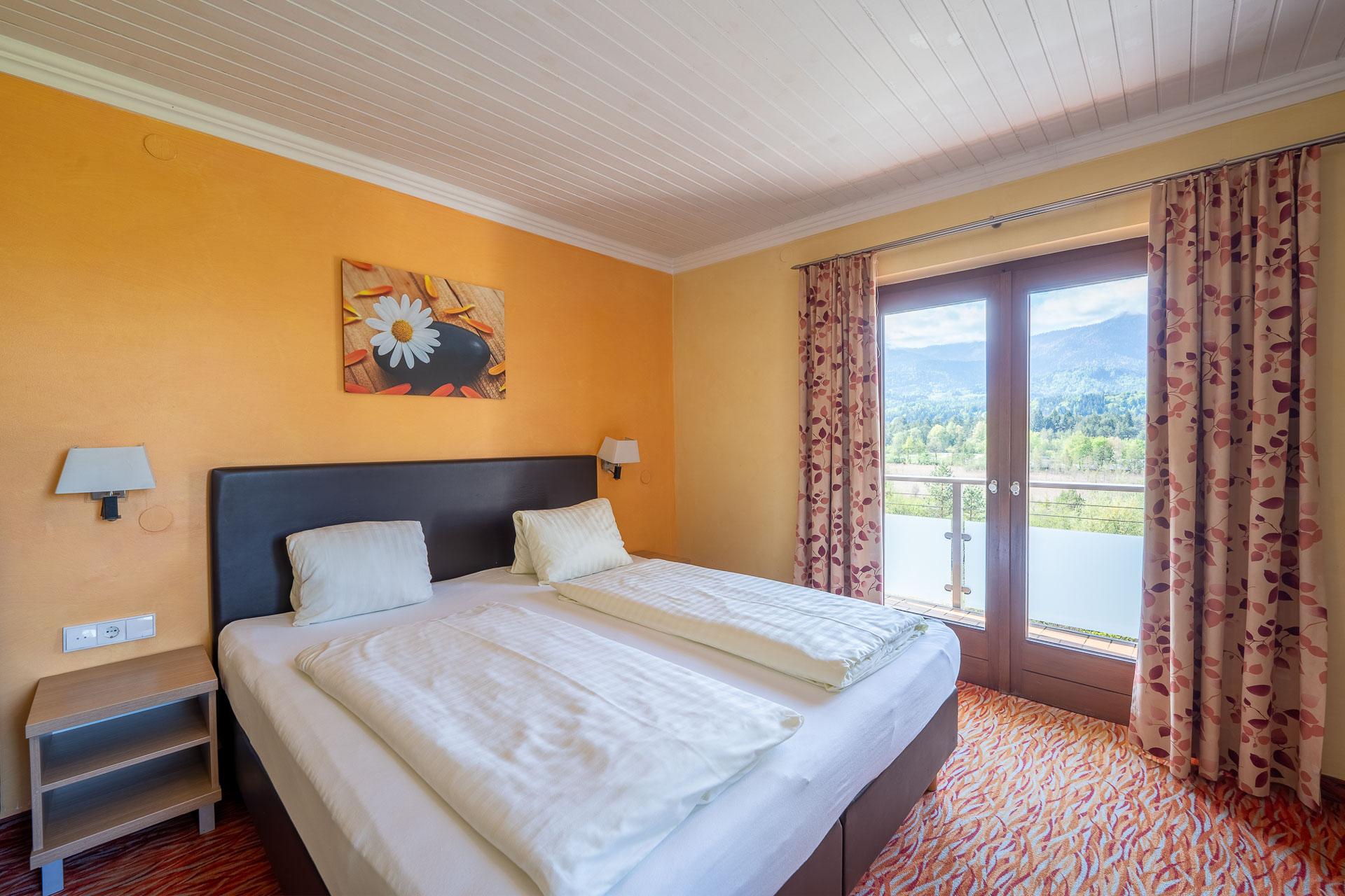 Zimmer mit Dusche oder Bad, WC, Radio, Telefon, SAT-TV und Balkon mit herrlichem Ausblick auf die Karawanken.