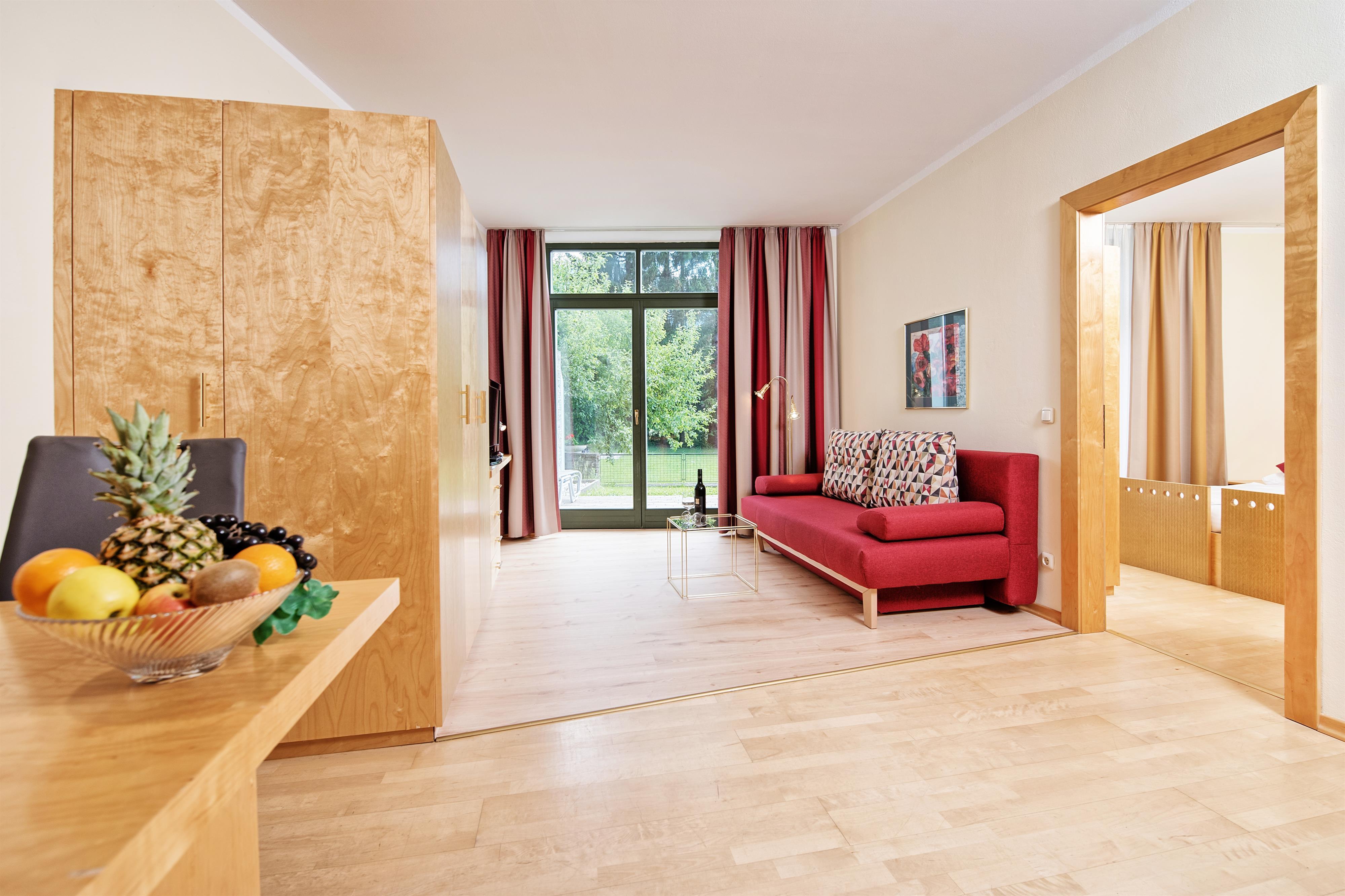 Viel Grün ums Haus! Weitläufige Grünflächen an unserem Hotel bieten die Möglichkeit auf beqemen Gartenliegen der Sonne zu frönen oder sich im kühlen Schatten der Apfelbäume in ein Buch zu vertiefen. Familien mit Kindern wissen die verkehrssichern Spielflächen für Fussball und Volleyball zu schätzen, der Spielplatz und die Tischtennisanlage sind stets gut besuchte Highlights in jedem Kinderurlaub.