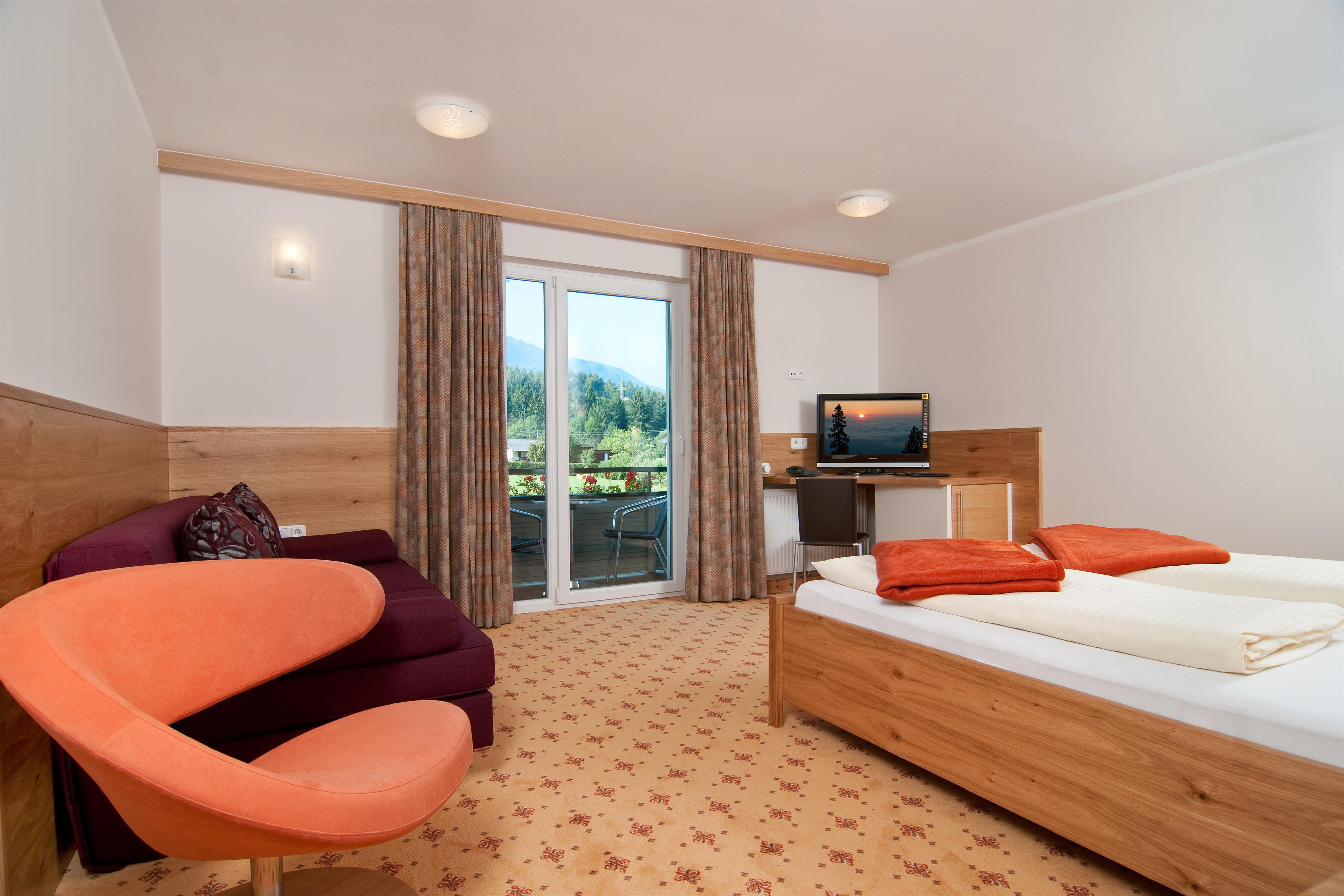 Ihr Urlaubszuhause: Neue Panorama-Zimmer in Designer Ausstattung und neu gestylte, großzügige Hotelzimmer Mittagskogel, die Ihnen in trendig-wohnlicher Atmosphäre das gewisse Etwas schenken, oder die großzügigen Suiten und und die kuscheligen Appartements in neuem Design - alle mit Balkon zur Sonnenseite und atemberaubenden Blick auf die nahe Bergkette der Karawanken.