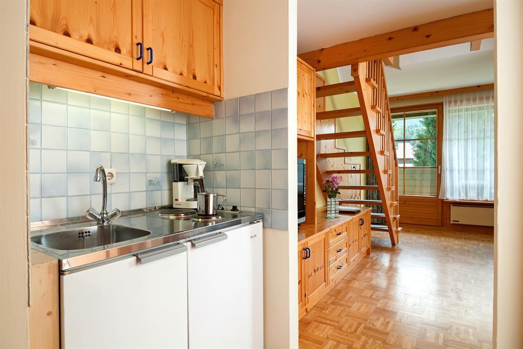 2-Zimmer-Wohnung für 2-4 Personen,1 Doppelzimmer (Empore) + 1 Wohn/Schlafraum mit Doppel-Ausziehcouch, Eßecke teilweise mit Sitzbank, Kochnische mit Kühlschrank und Kaffeemaschine, Südbalkon, Du/WC (getrennt), Radio, SAT-TV, Hotelsafe, Telefon.