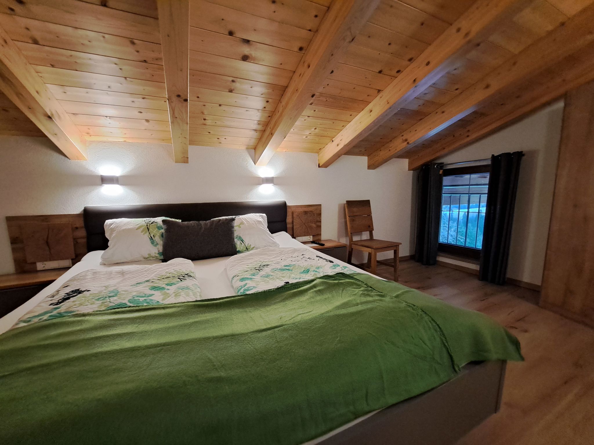 Lehen, 3-Zimmer-Wohnung 71 m2 auf 2 Stockwerken. Objekt geeignet für 5 Erwachsene + 1 Kind. Modern eingerichtet: Obergeschoss: Eingang. Ausgang zur Terrasse. Wohnküche (Backofen, Geschirrspüler, 4 Glaskeramikplatten, Toaster, Wasserkocher, Tiefkühler, elektrische Kaffeemaschine) mit 1 Diwanbett, Essecke und Sat-TV. Sep. WC. Heizung. 2. Obergeschoss: 1 abgeschrägtes Zimmer mit 1 Doppelbett, 1 Klappbett und Sat-TV. 1 abgeschrägtes Doppelzimmer mit Sat-TV. Dusche/WC. Heizung. Terrasse 55 m2 teilweise überdacht. Terrassenmöbel, Elektrogrill. Sehr schöne Panoramasicht auf die Berge und das Tal. Zur Verfügung: Safe, Kinderhochstuhl, Babybett, Haartrockner. Internet (Wireless LAN, gratis). Bitte beachten: Nichtraucher-Unterkunft. Feuerlöscher. Bei Belegung mit weniger Personen als der maximalen Personenzahl stehen nicht alle Wohneinheiten zur Verfügung.