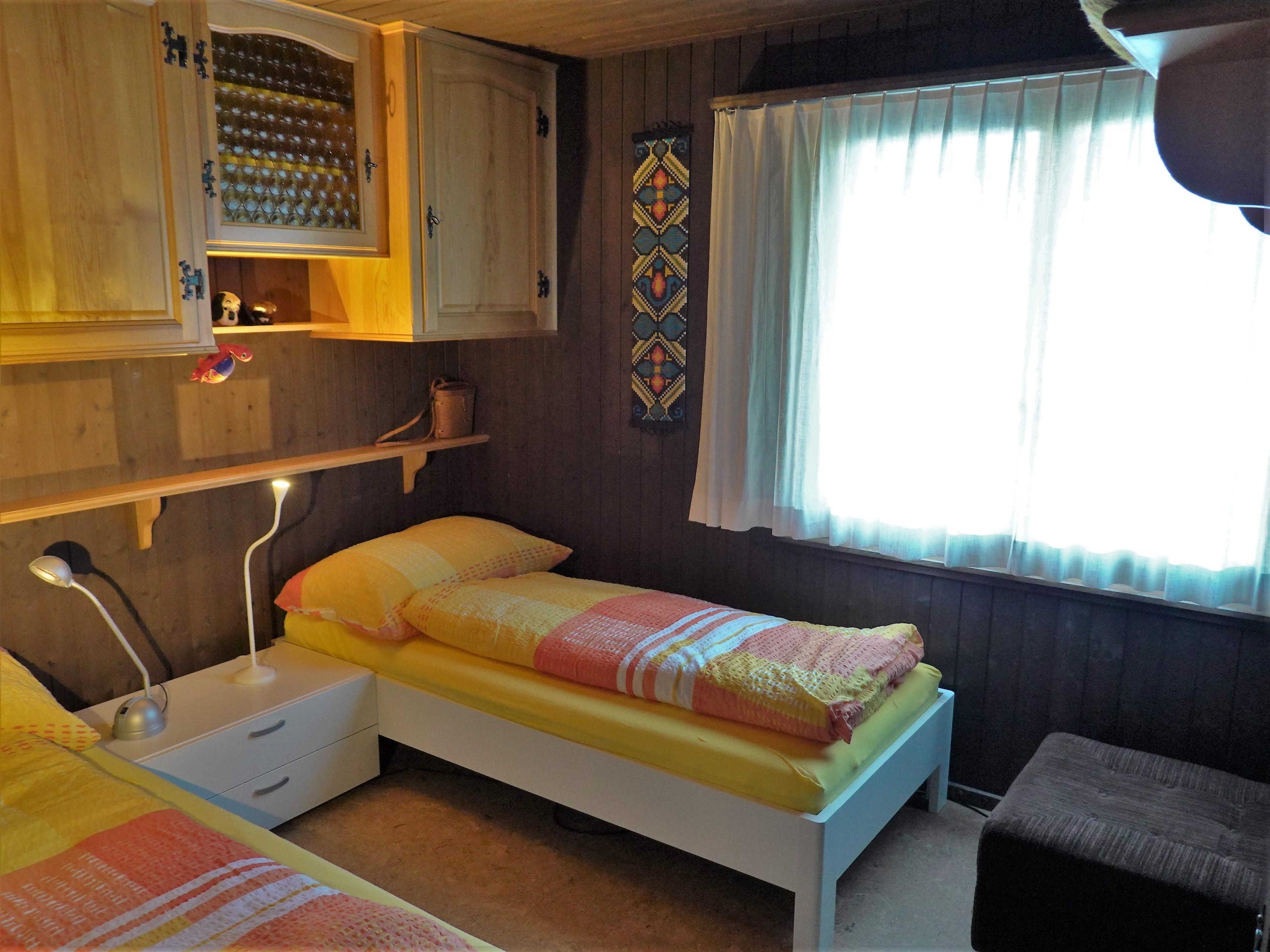 Ein Schlafzimmer mit zwei Einzelbetten, ein Schlafzimmer mit einem komfortablen Bettsofa für zwei Personen total = 4 Betten.