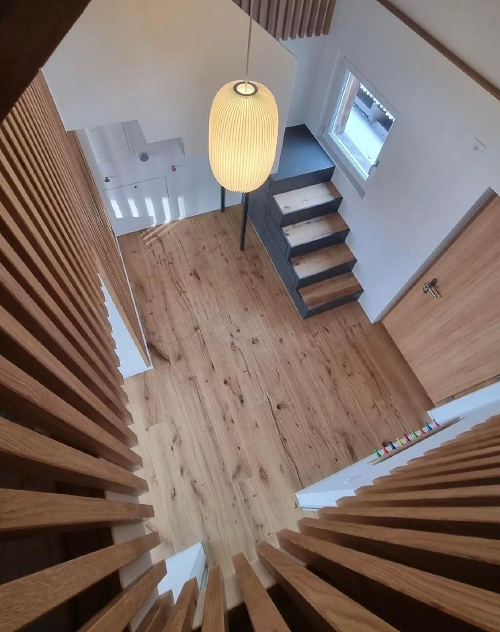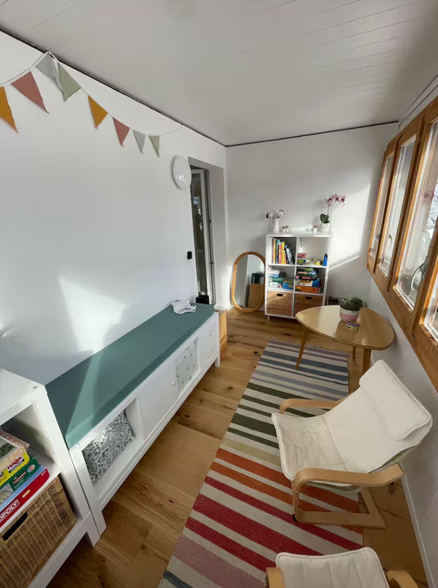 Ein gedeckter Parkplatz (Carport) steht direkt vor dem Haus zur Verfügung. Die nächstgelegene öffentliche Verkehrshaltestelle ist 450 Meter entfernt, was die Erkundung der Umgebung auch ohne Auto erleichtert.